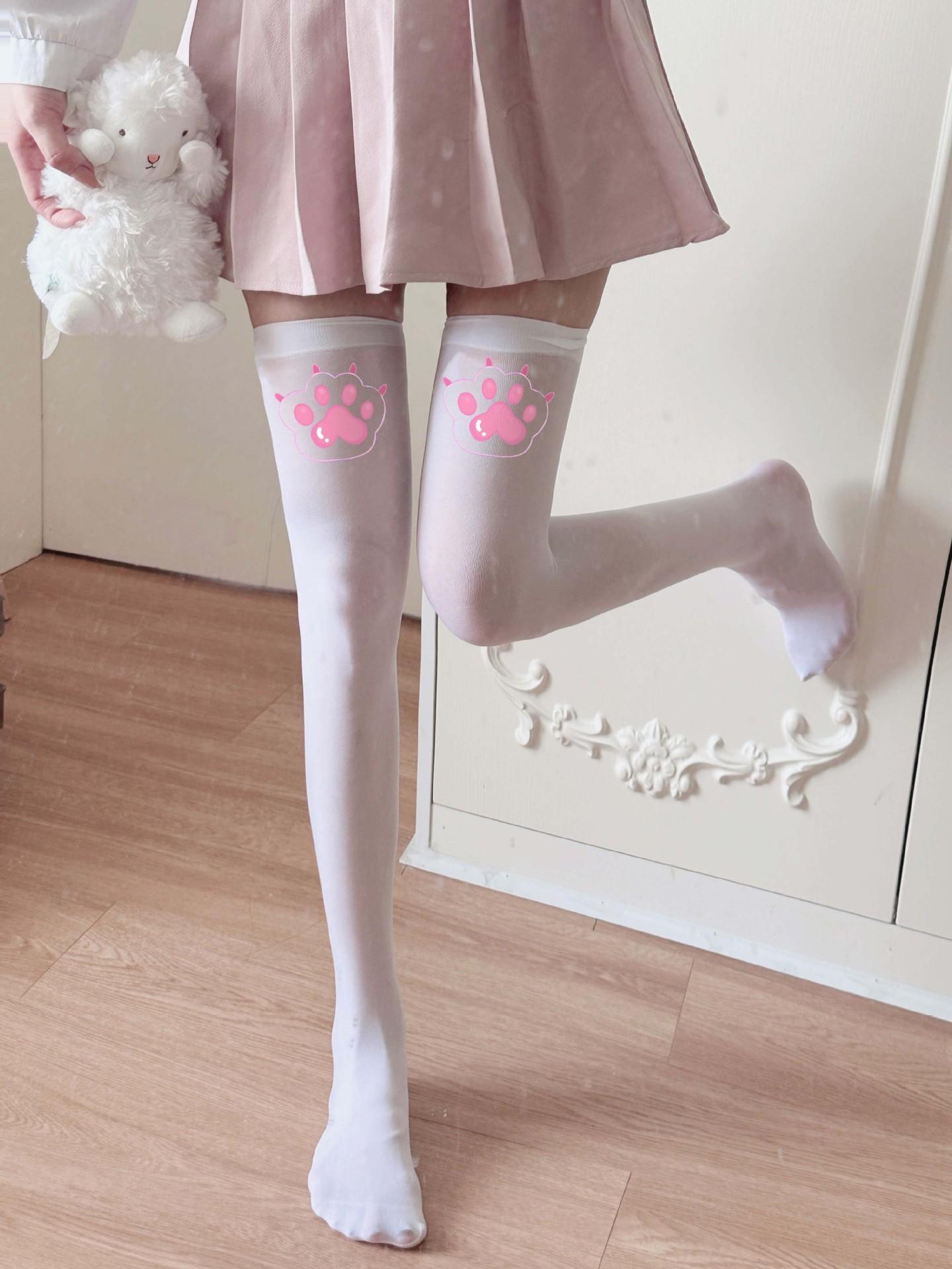Calcetines Blancos de Terciopelo hasta la Rodilla Estampado de Garra de Gato Calcetines Largos Adelgazantes para Piernas Estilo Japonés Calcetines hasta el Muslo para Mujer Estilo Preppy Calcetines Dulces