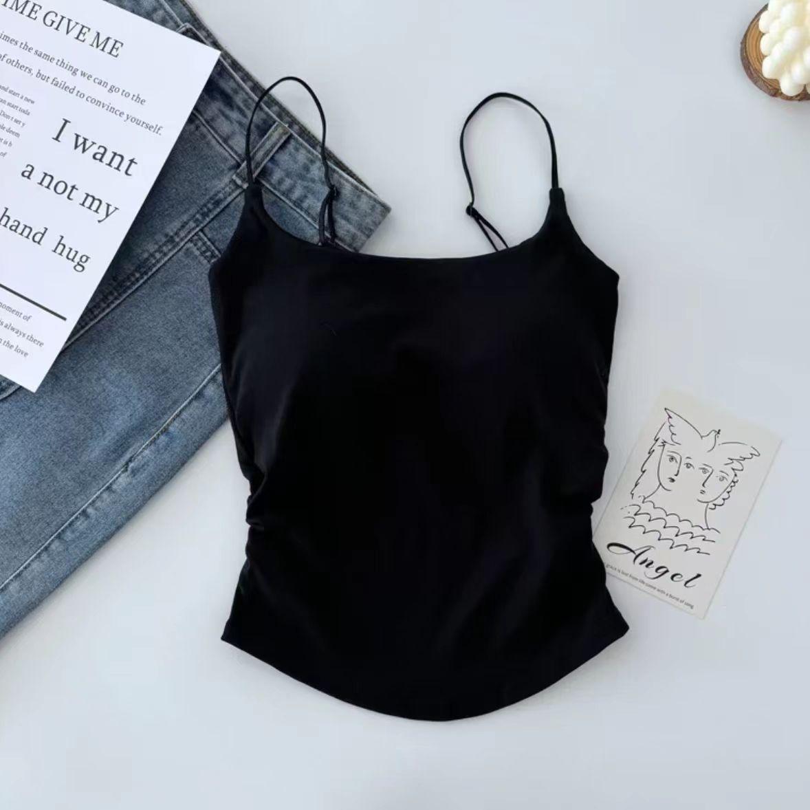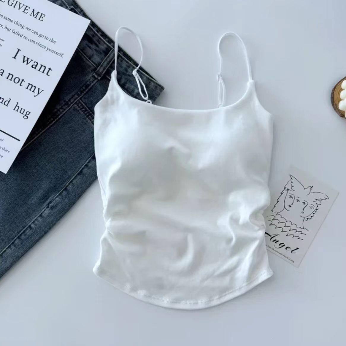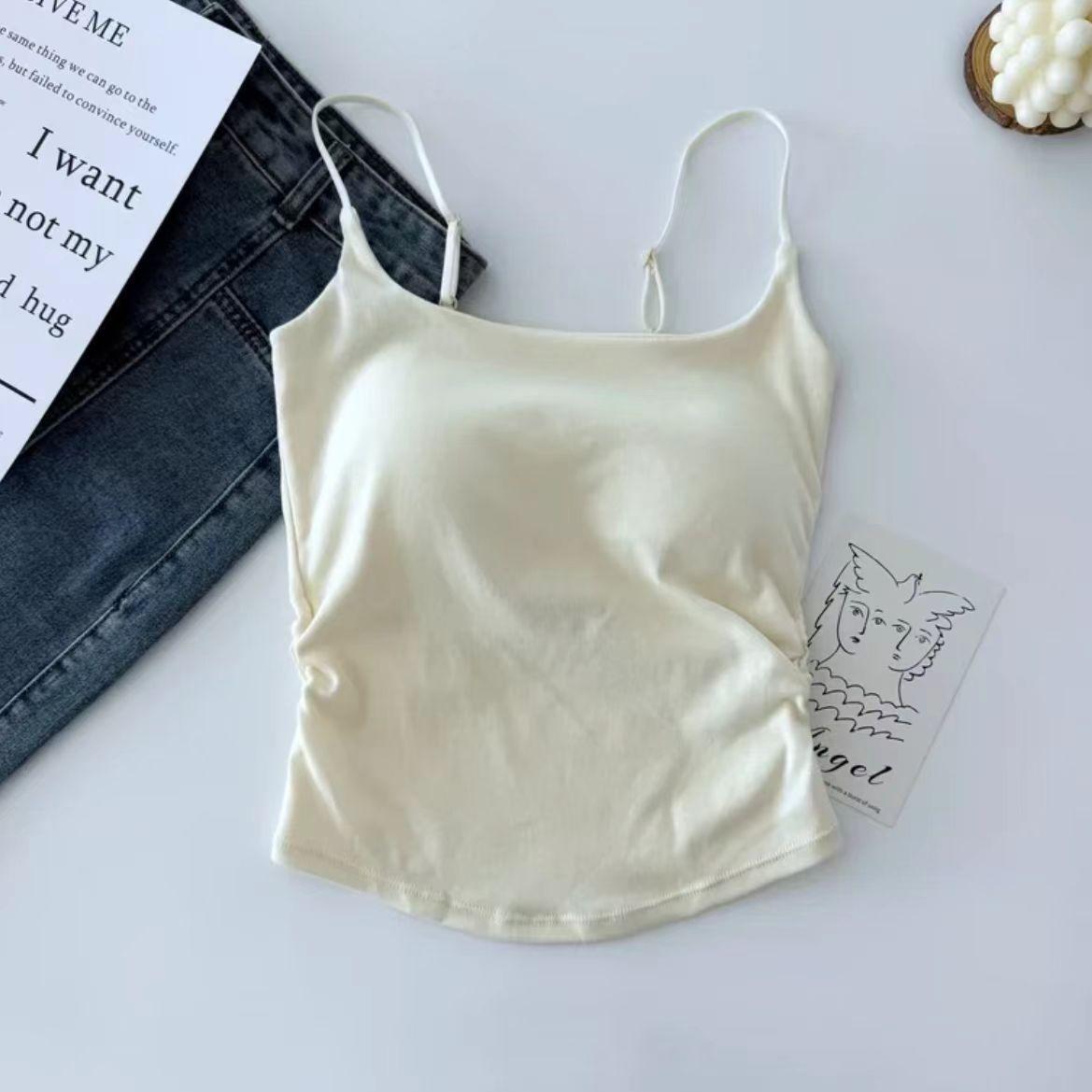 Pure Wish Camisola de Algodón Combinable para Mujer Diseño Nicho con Sentido Plisado Ajustado para Fondo Ropa Exterior con Copa Fija