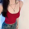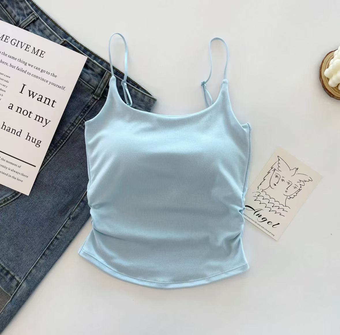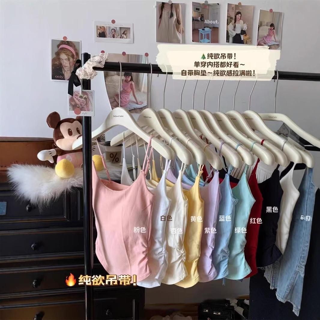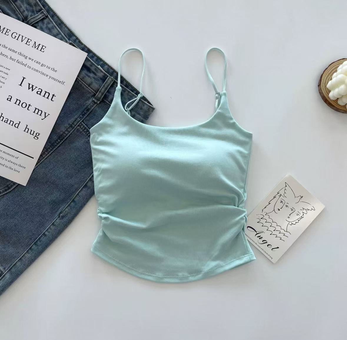 Pure Wish Camisola de Algodón Combinable para Mujer Diseño Nicho con Sentido Plisado Ajustado para Fondo Ropa Exterior con Copa Fija