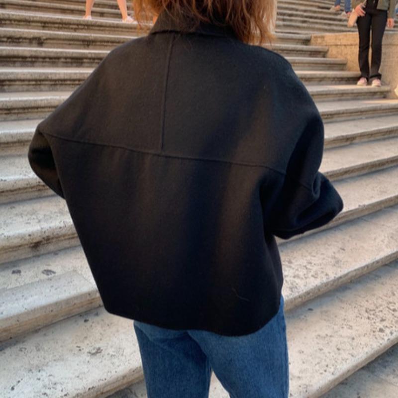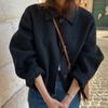 Chic Coreano Otoño e Invierno Nuevo Solapa Retro Casual Suelto Mangas Abullonadas Pequeño Lana Corto Abrigo Cárdigan para Mujer