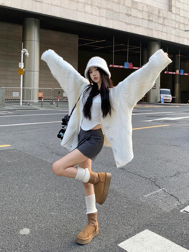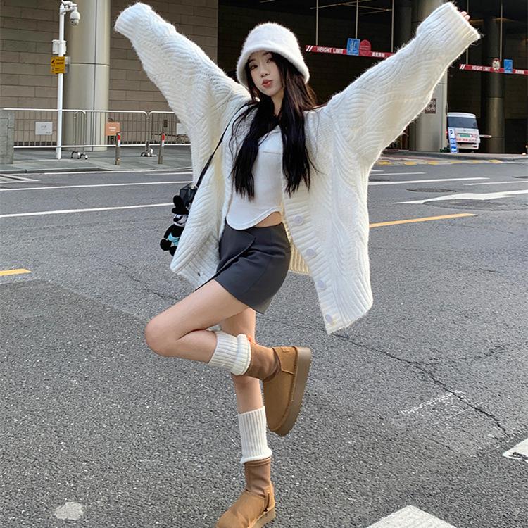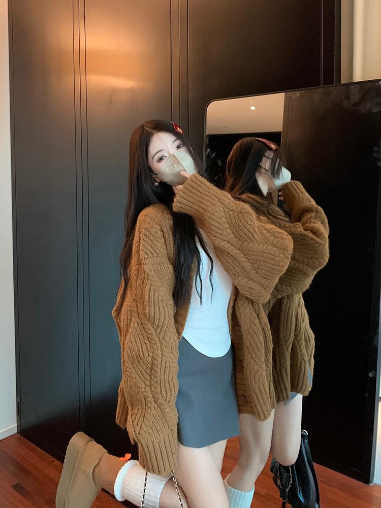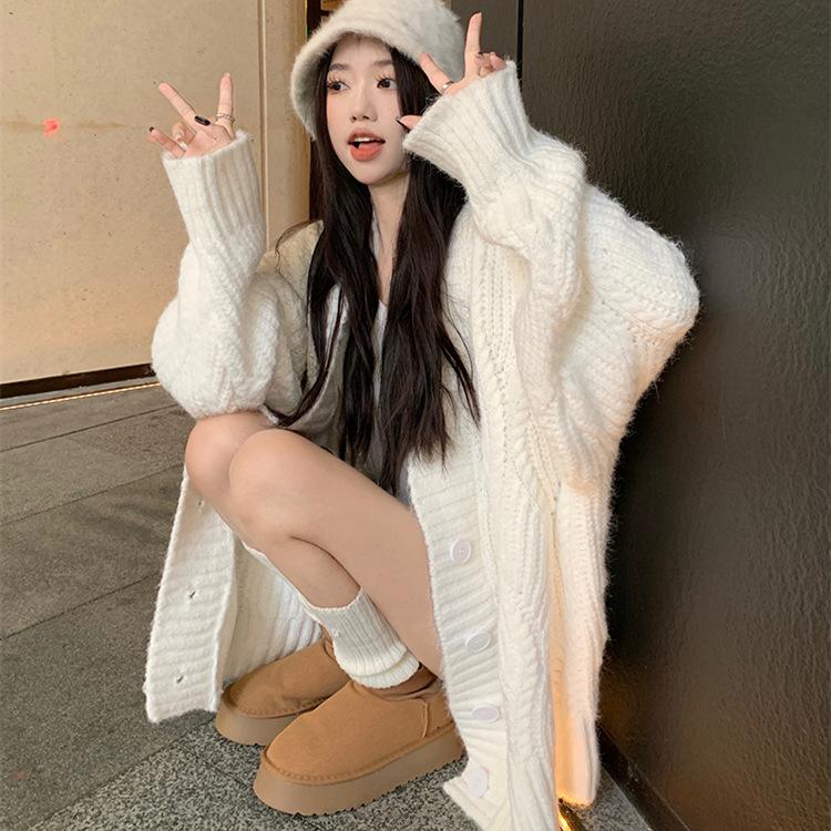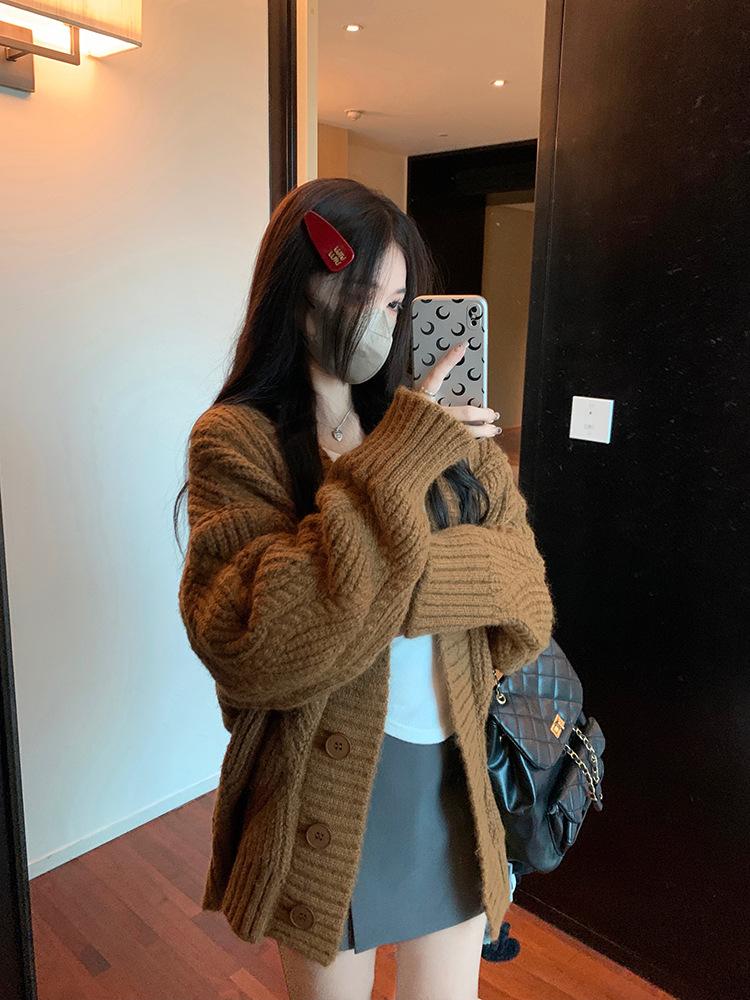 Estilo K de Primavera y Otoño 2025 Estilo Cálido y Perezoso Color Puro Cuello en V Manga Larga Suéter Grueso Chaqueta Cárdigan para Mujer
