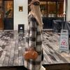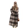 Otoño e Invierno 2025 Nuevo Estilo Estilo Coreano Abrigo de Lana Pequeño de Largo Medio de Doble Vista a Cuadros para Mujer