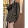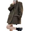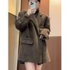 Otoño e Invierno 2025 Nuevo Estilo Abrigo de Lana para Personas Pequeñas, Abrigo Corto Coreano de Lana de Espiga Gris para Mujer