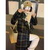 2025 Nuevo Estilo de Abrigo de Lana de Otoño e Invierno Estilo Pequeño Perezoso Abrigo de Lana a Cuadros de Largo Medio para Mujer