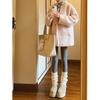 2025 Nuevo Abrigo de Lana de Otoño e Invierno para Personas Pequeñas, Abrigo de Lana Corto Estilo Coreano con Botones de Cuerno para Mujer