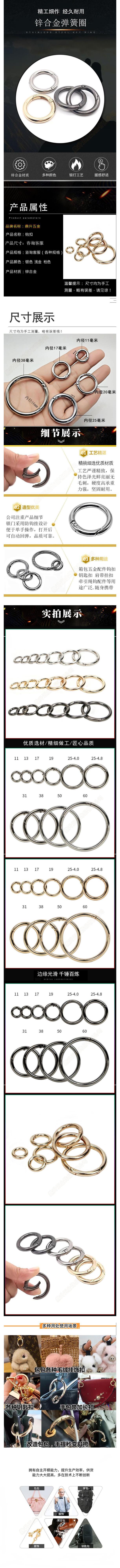 Aleación de Zinc Anillo de Resorte Anillo Abierto Llavero Herrajes para Cincha de Equipaje Accesorios de Metal Anillo de Hierro Hebilla Colgante Anillo Abierto