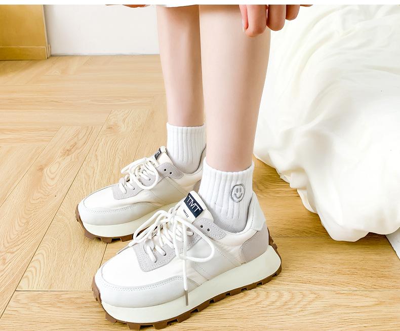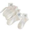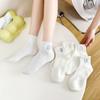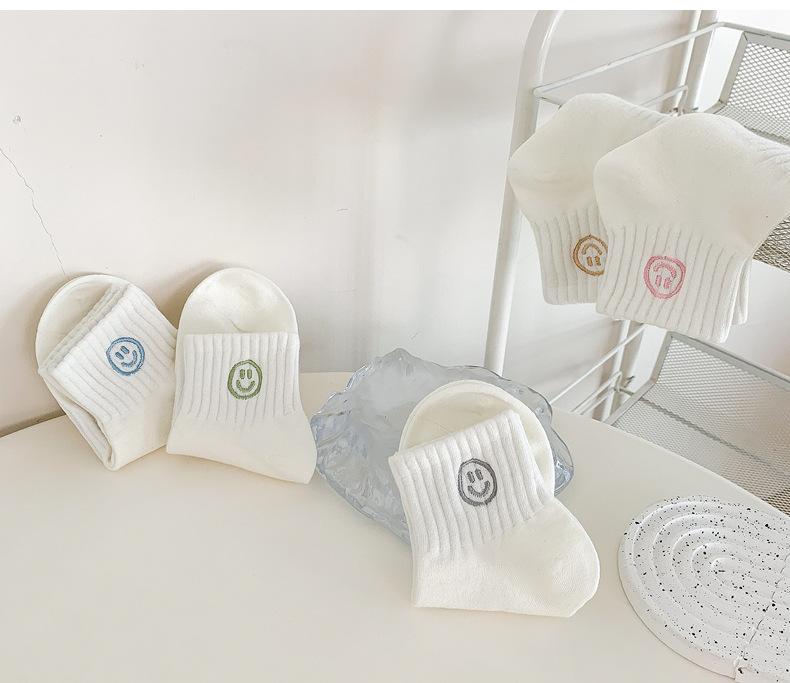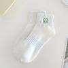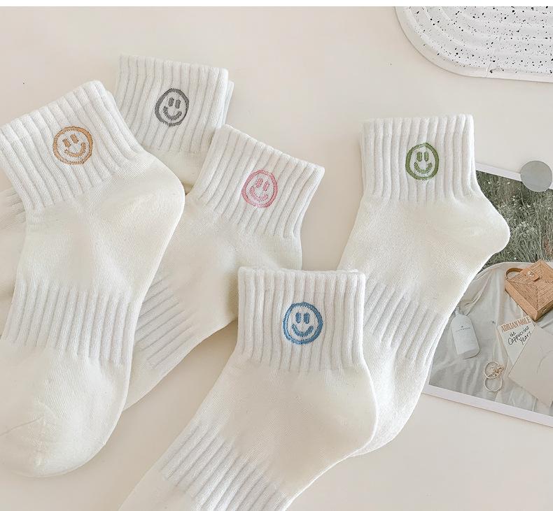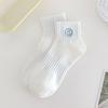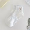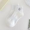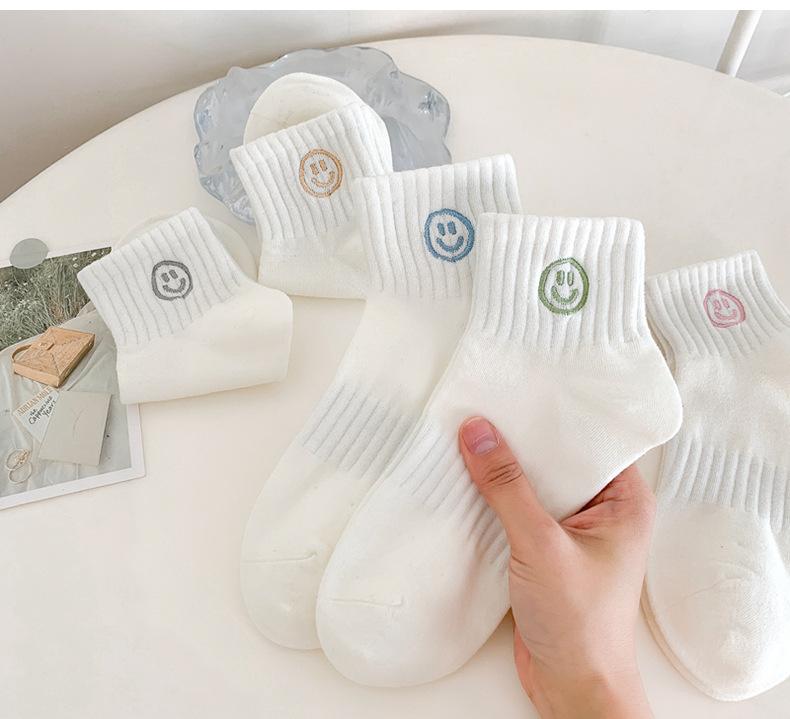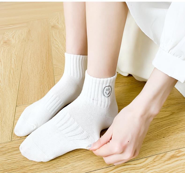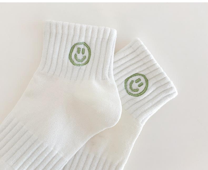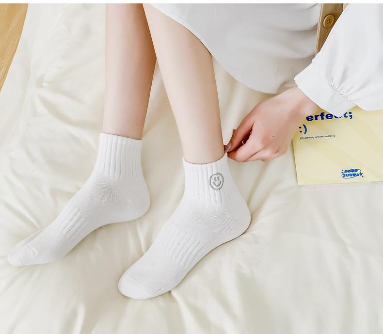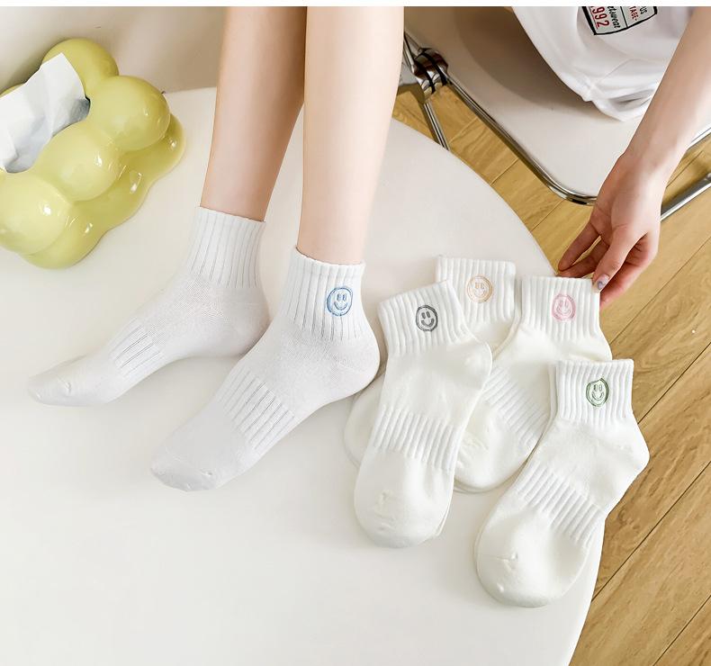 Calcetines Cortos de Algodón Blanco para Mujer Primavera Verano Delgados Japoneses Lindo Bordado Carita Sonriente Deportes Niñas Corte Bajo Calcetines Cortos