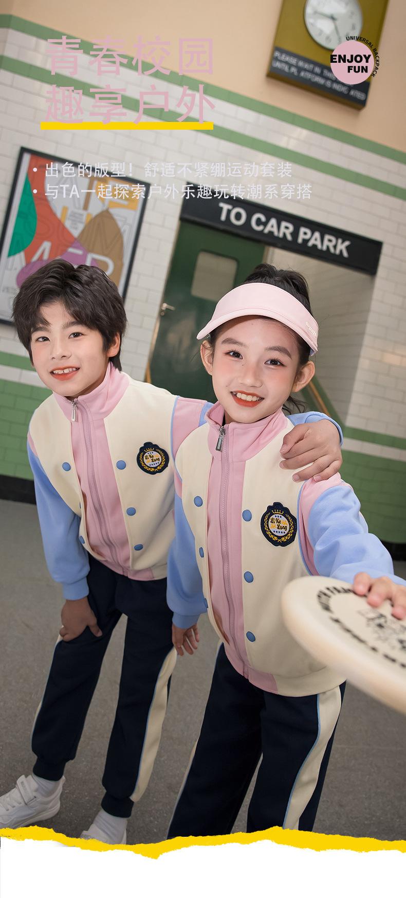 Nuevo Uniforme de Primaria 2024 Traje Rosa Uniforme de Clase para Niños Set de Tres Piezas Primavera y Otoño Uniforme de Jardín de Niños Profesores