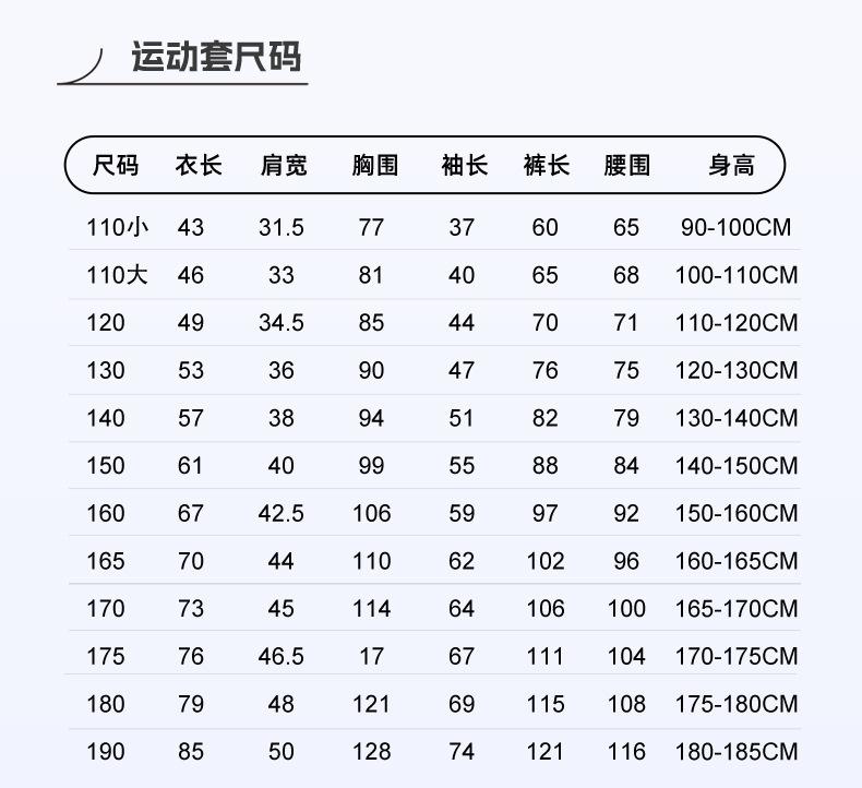 110cm small, 110cm large, 120cm, 130cm, 140cm, 150cm, 160cm, 165cm, 170cm, 175cm, 180cm