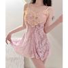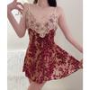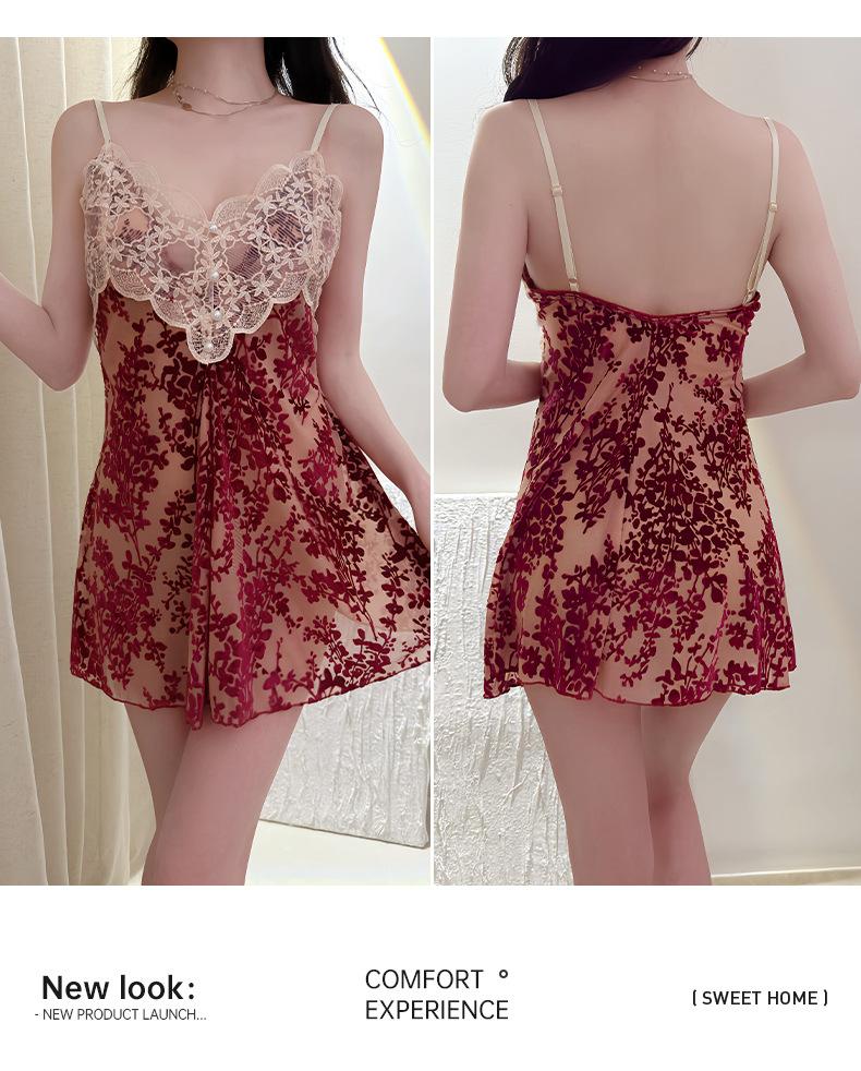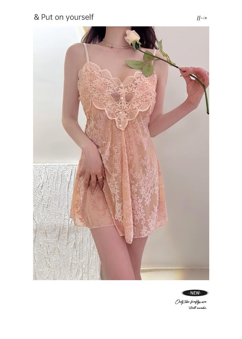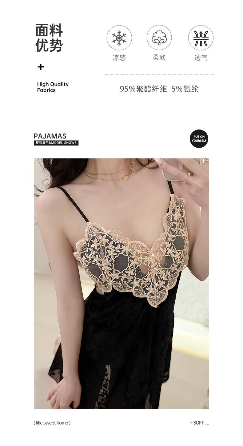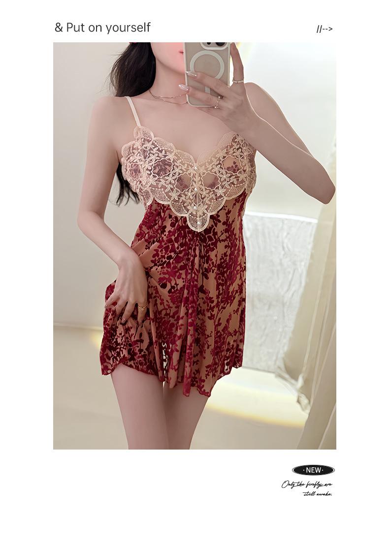 Camisón Floral Sexy para Mujer, Camisola Fina de Verano para Dormir, Estilo Deseo Puro con Almohadillas en el Pecho, Ropa de Dormir de Encaje de Alta Gama