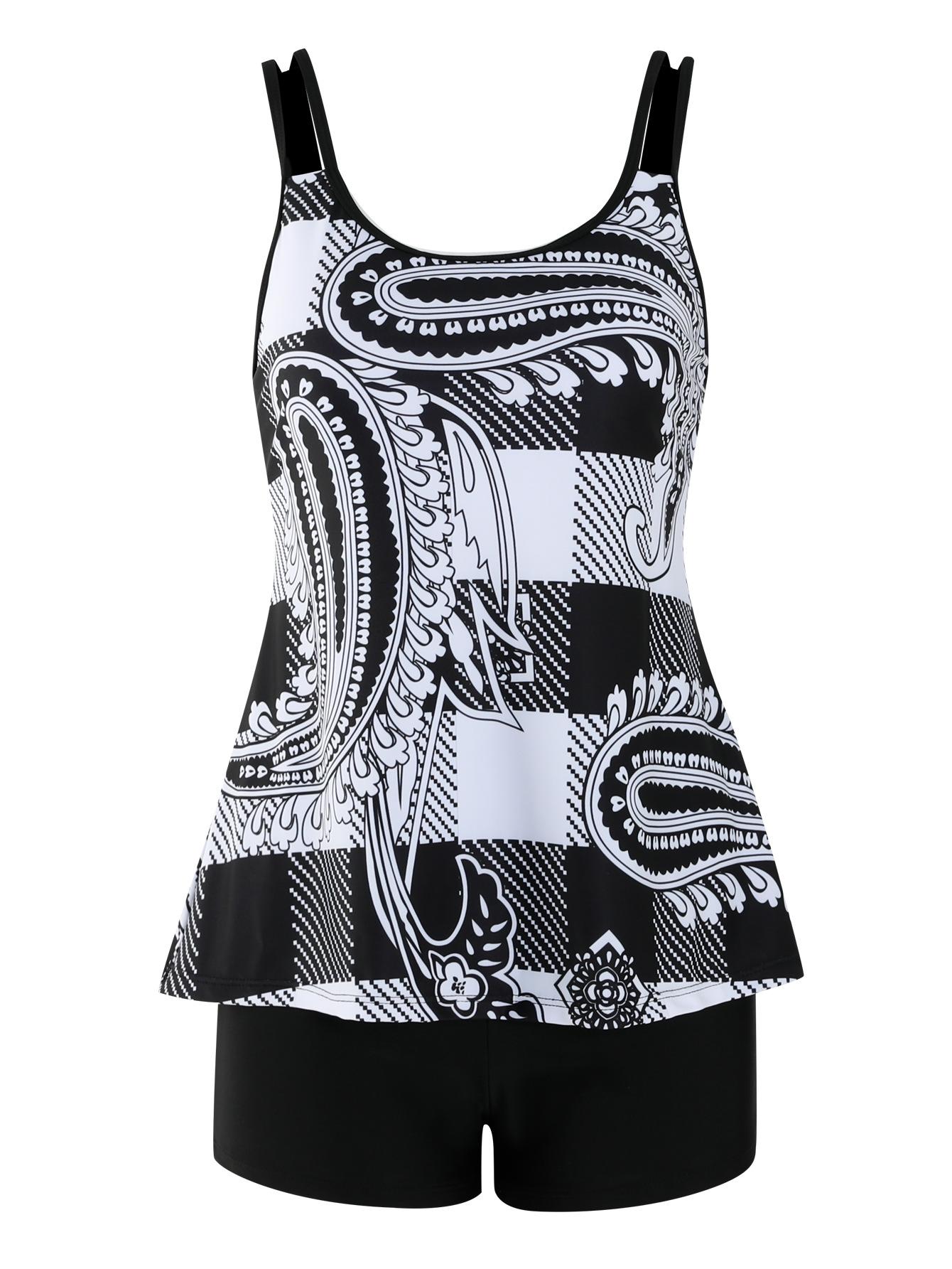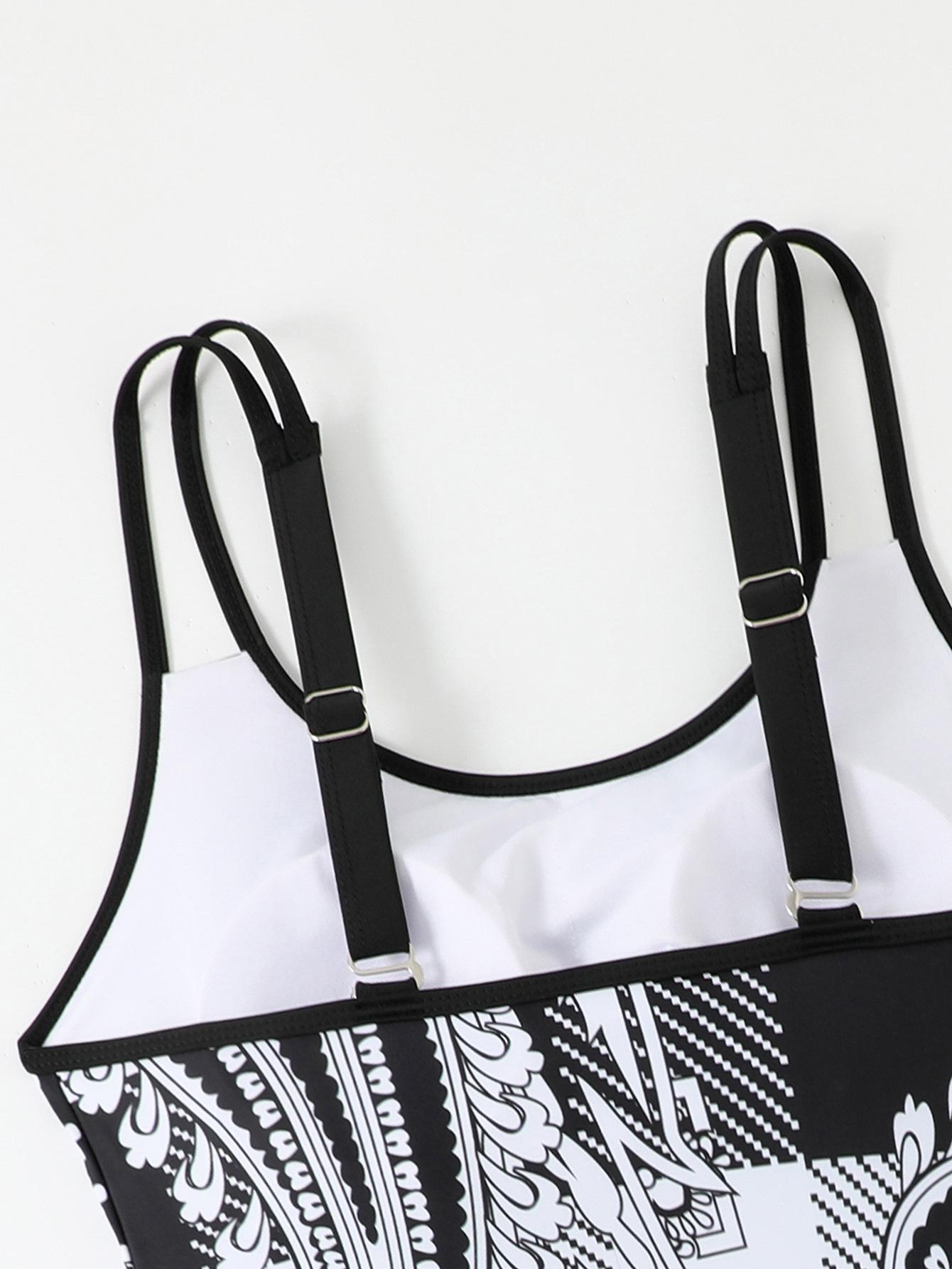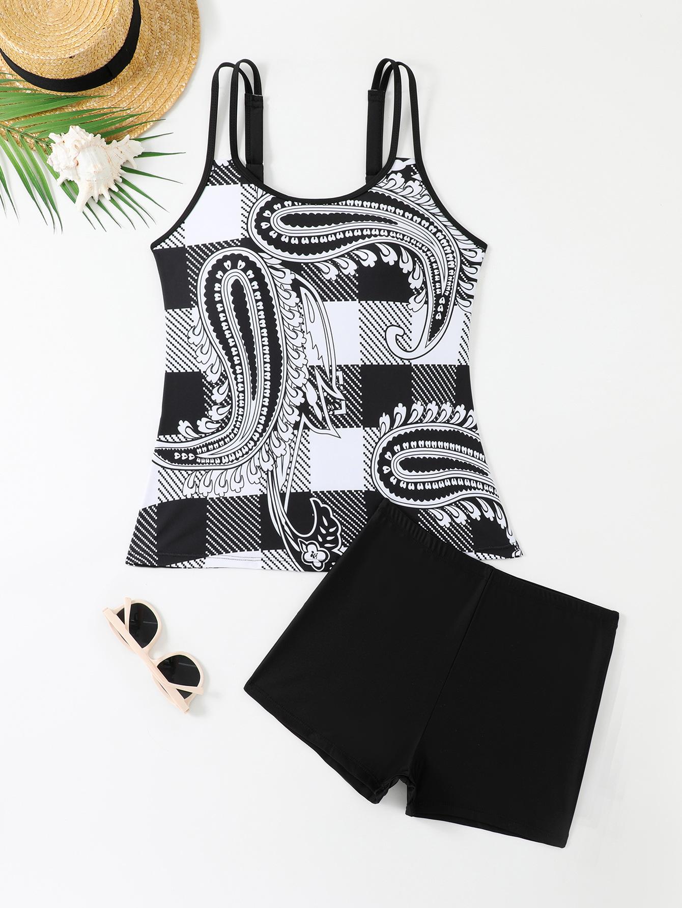 Traje de Baño Tankini de Rayas Cian con Lunares Estilo Chaleco de Talla Grande Nuevo 2025 Europeo y Americano Transfronterizo Traje de Baño Amazon para Mujer