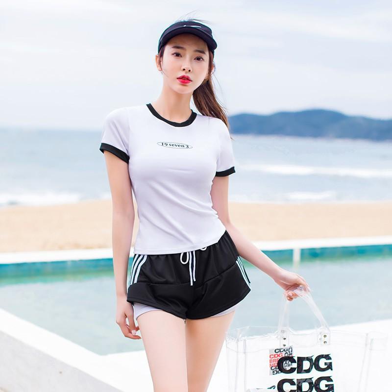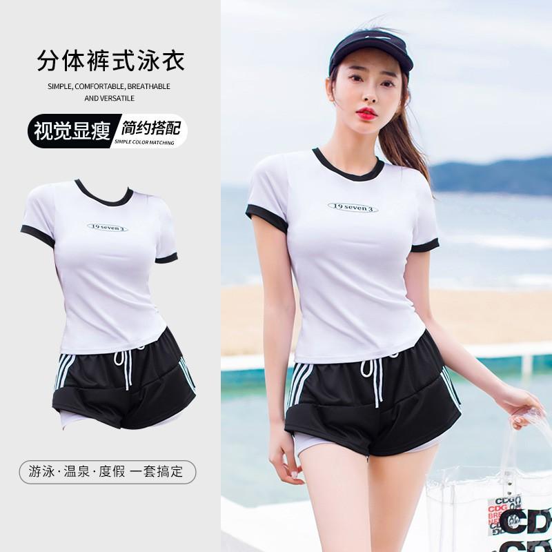 Traje de Baño para Mujer Deportivo Conservador Adelgazante Delgado Estilo Shorts Divididos de Dos Piezas Traje de Baño para Estudiante Listo para la Venta