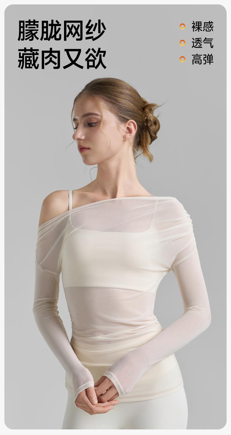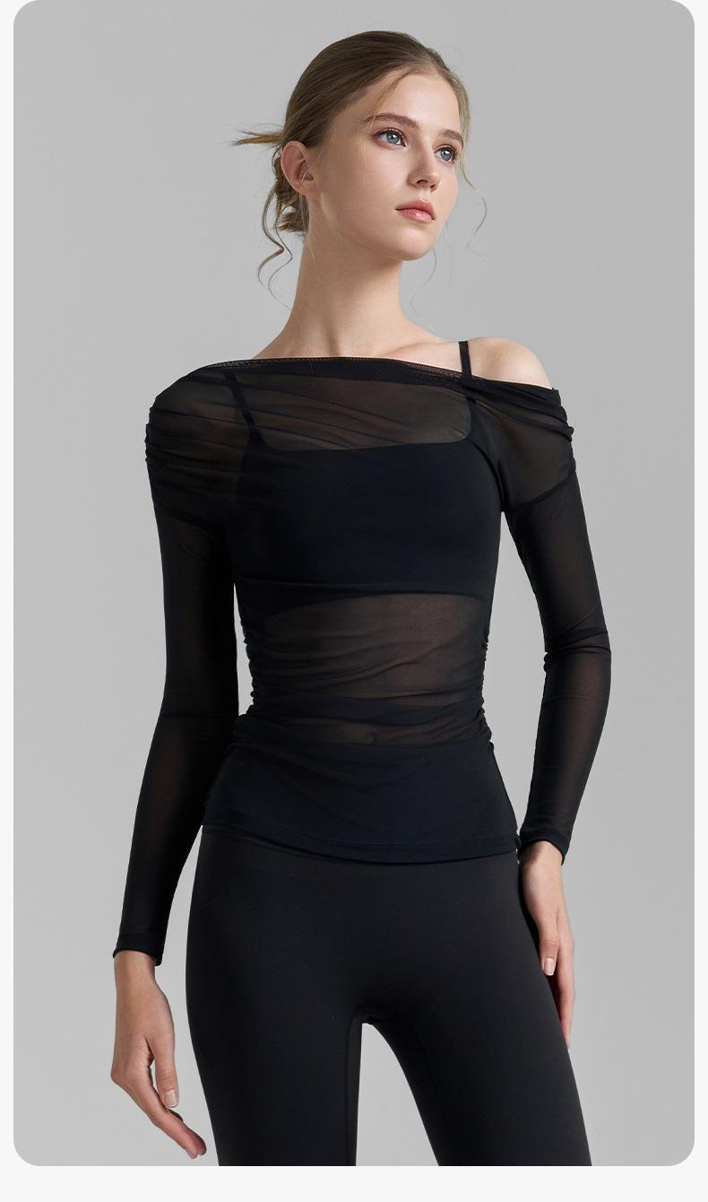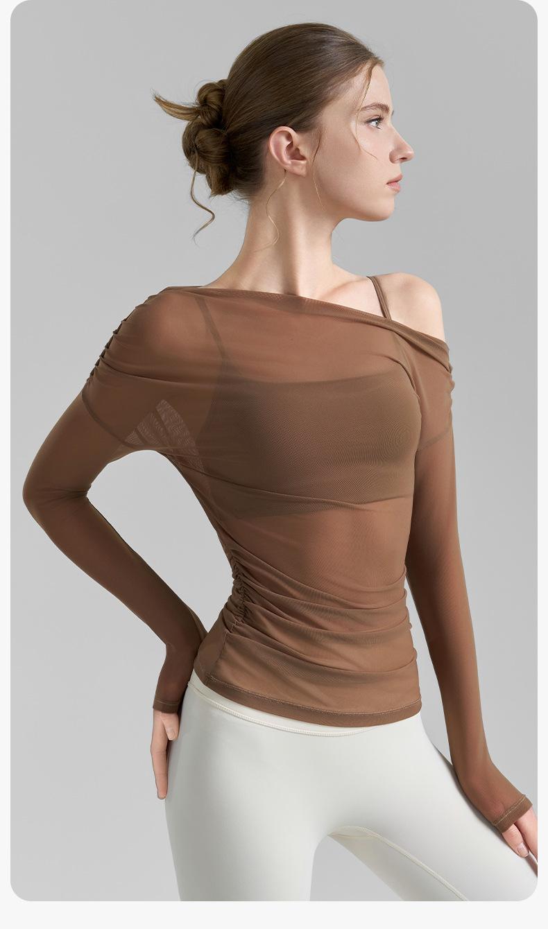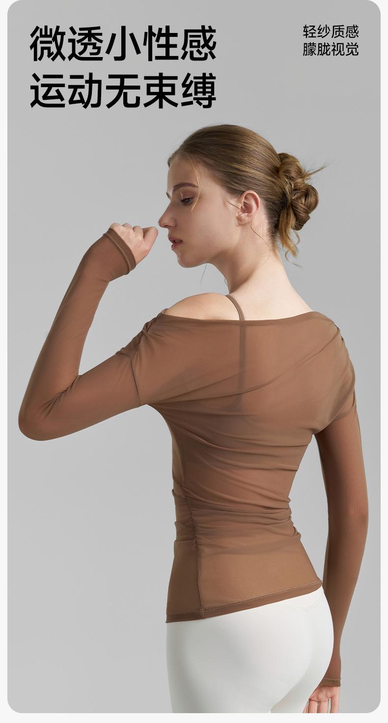 Traje de Yoga Conjunto de Dos Piezas Primavera y Verano Nuevo Top de Yoga de Tirantes Desnudos Malla Transpirable Blusa Deportiva de Manga Larga para Mujer