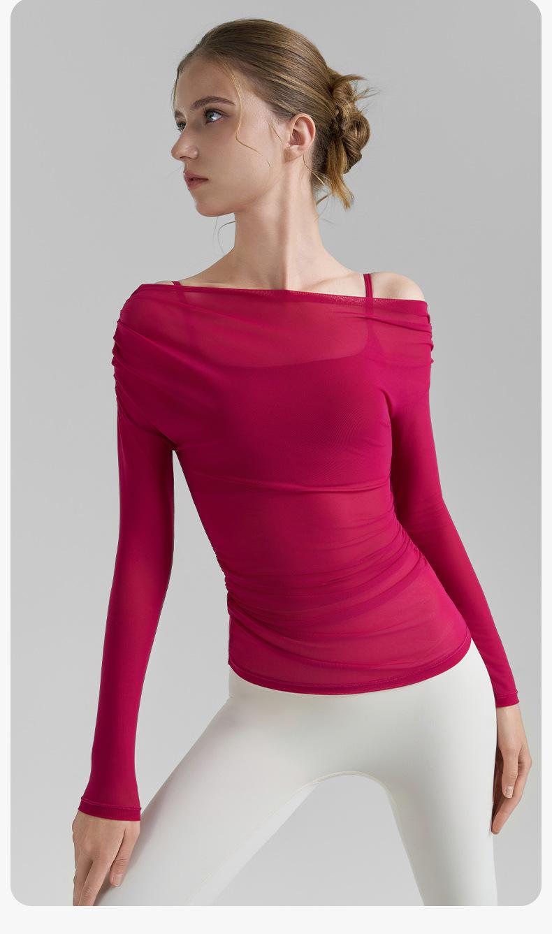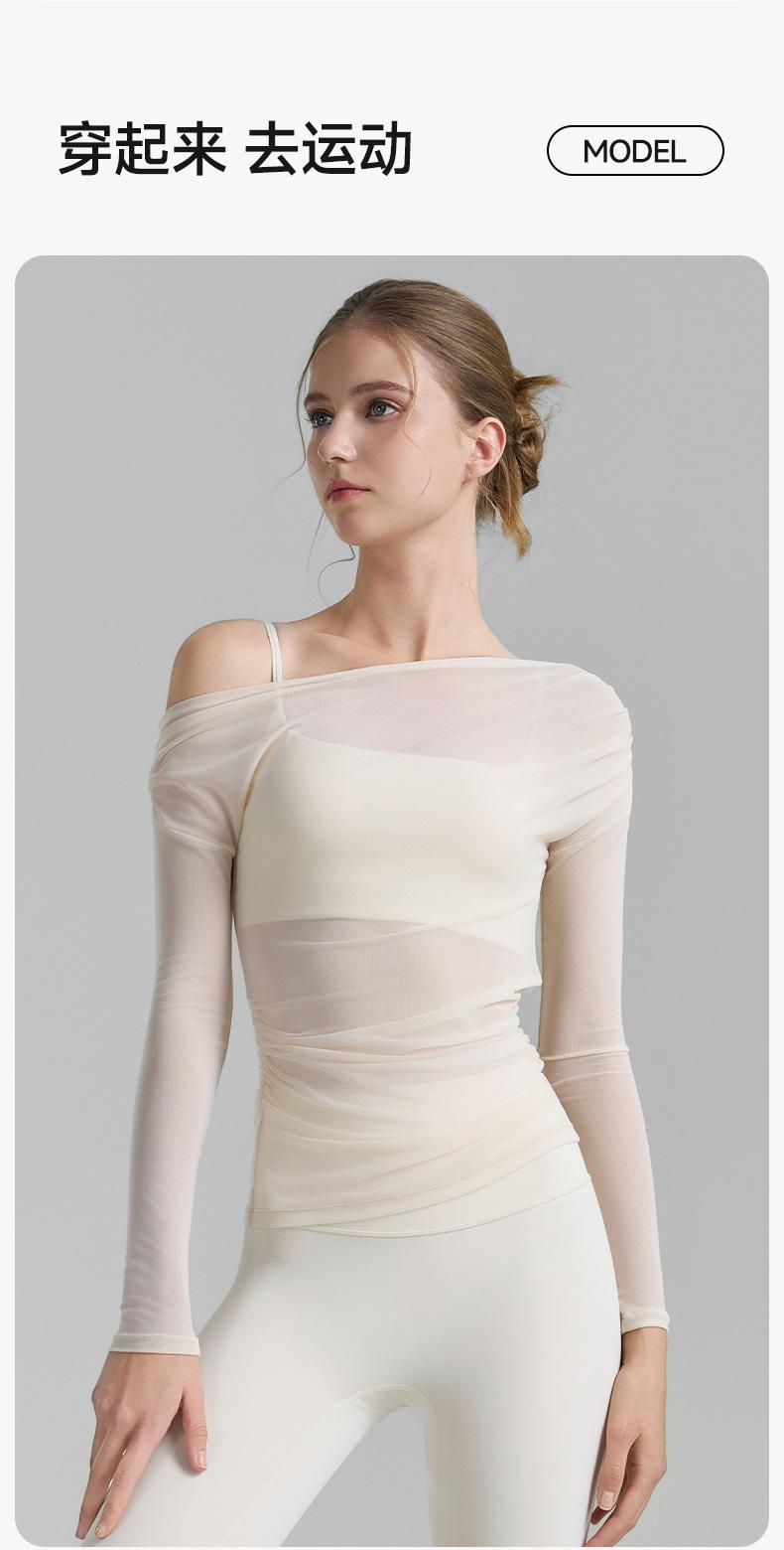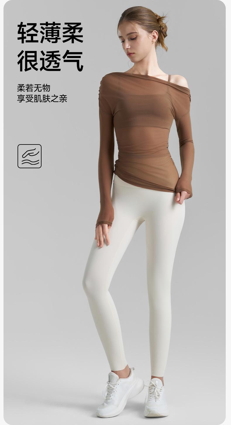 Traje de Yoga Conjunto de Dos Piezas Primavera y Verano Nuevo Top de Yoga de Tirantes Desnudos Malla Transpirable Blusa Deportiva de Manga Larga para Mujer
