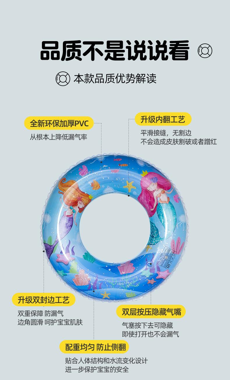 Flotador de sirena lentejuelas niña 6 años - 10 años caricatura lindo mundo submarino flotador inflable al por mayor