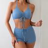 Moda 2024 Nuevo en Bikini de Color Contraste Pequeño Fresco Traje de Baño Sexy Traje de Baño Dividido para Mujer Vacaciones de Aguas Termales Mujer