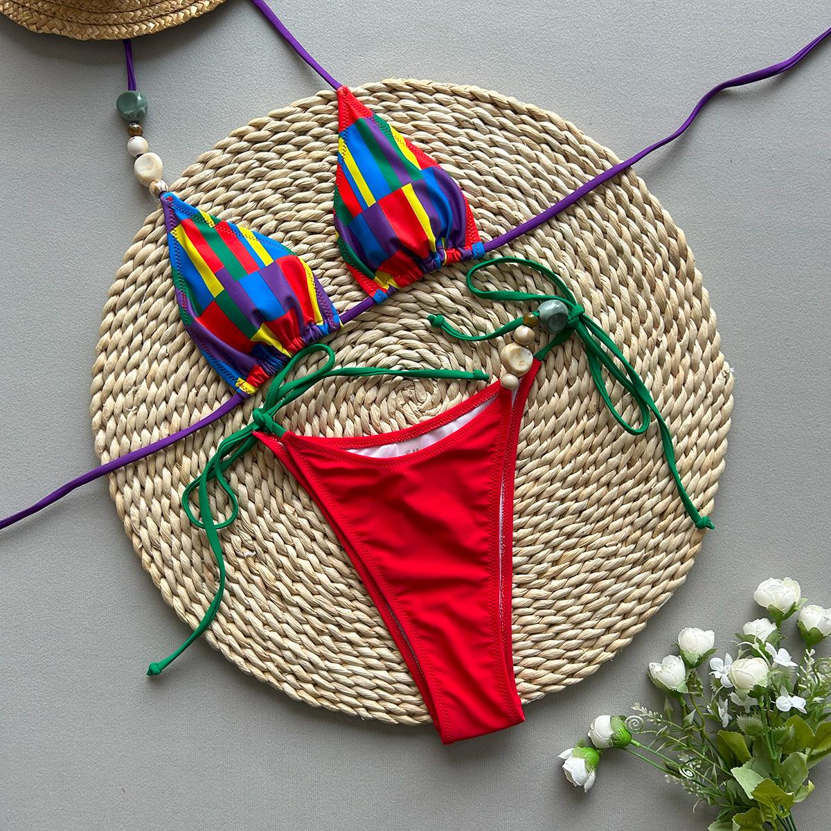 2025 Nuevo Bikini Sexy Europeo y Americano Bikini Empalmado Exportación Transfronteriza Traje de Baño Dividido para Mujer Traje de Baño Mujer