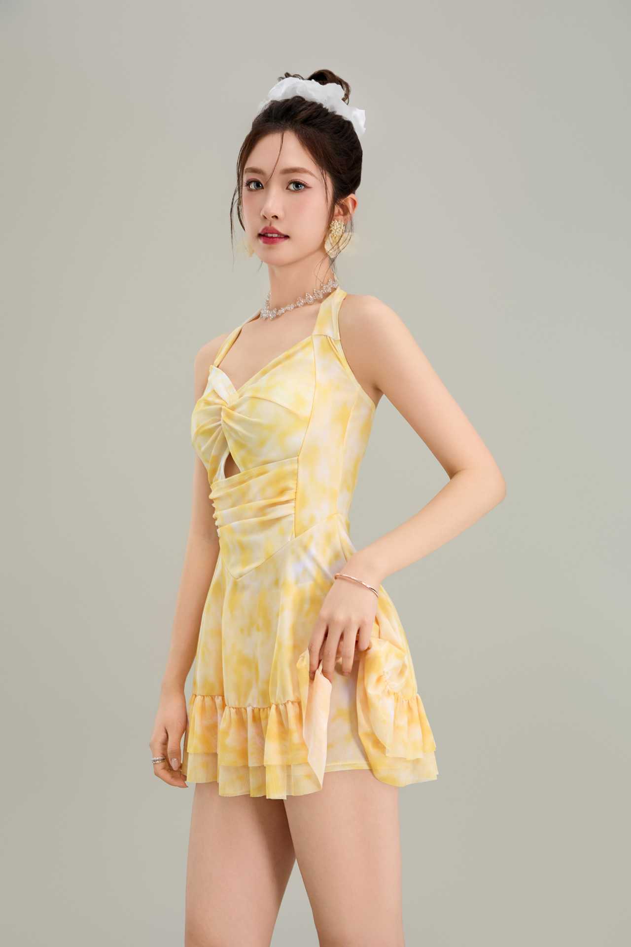 Traje de Baño Nuevo 2025 para Mujer Aguas Termales Conservador Puro Sexy Espalda Descubierta Una Pieza Falda Traje de Baño Traje de Baño para Mujer Vacaciones Orilla del Mar