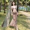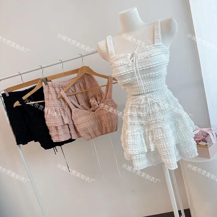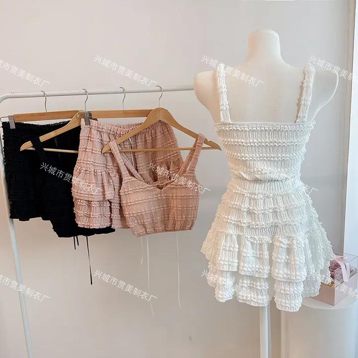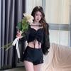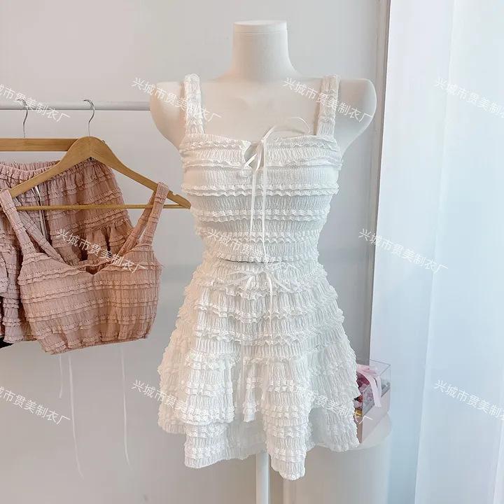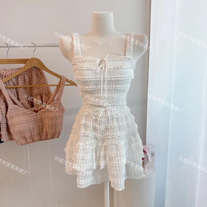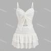 [4 Colores] Camisola Dulce de Encaje Estilo Coreano Sexy con Volantes Estilo Vacacional Traje de Baño Dividido de Tres Piezas para Mujer