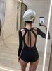 Traje de Baño Sexy Sexy de Manga Larga Estilo Ins Coreano de Nailon de Secado Rápido Sin Espalda Sencillo de Una Pieza Traje de Baño para Surf de Mujer