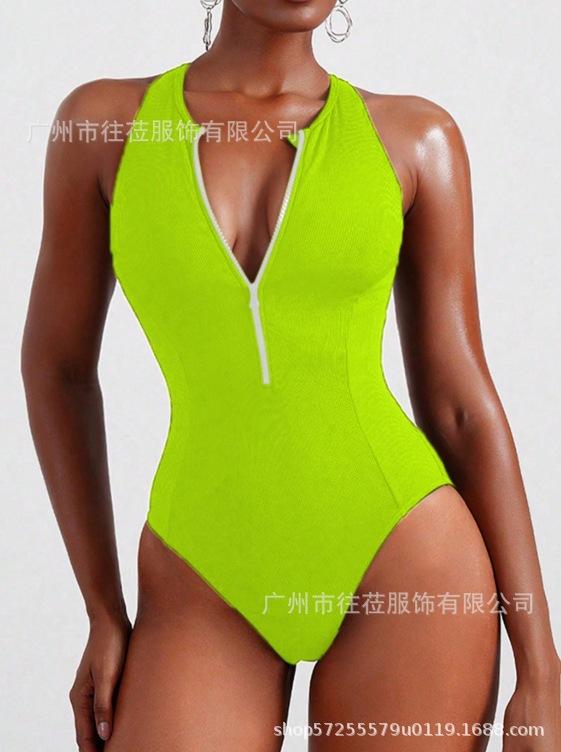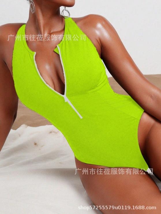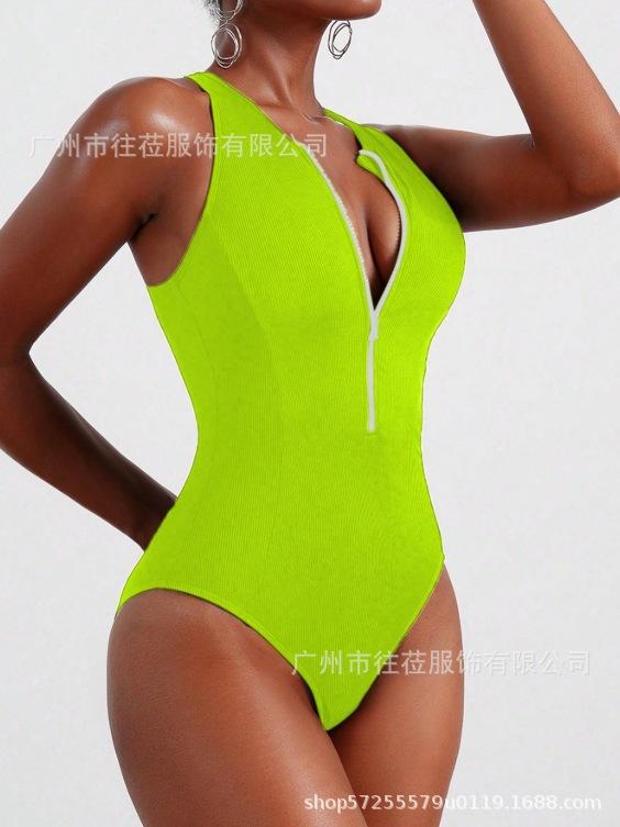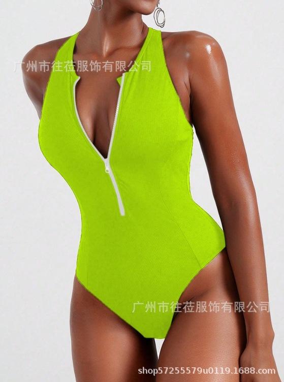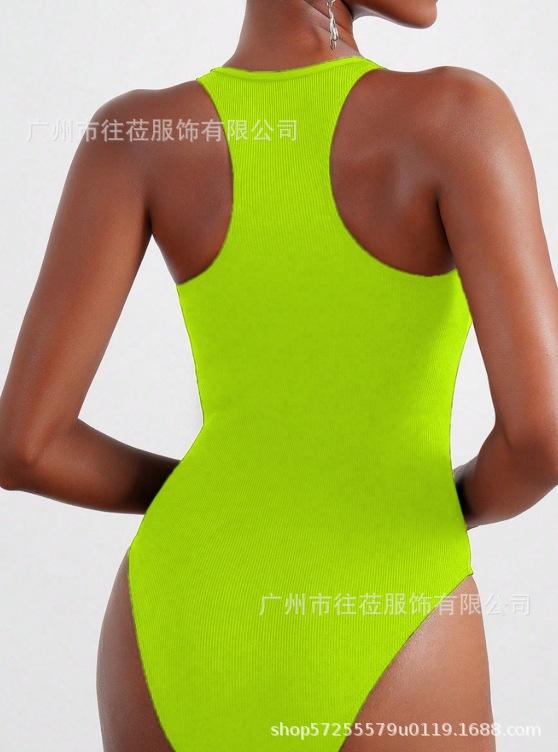 Mono Sexy de Verano para Mujer Europeo y Americano con Cremallera, Color Sólido, Moda, Ajustado, Sin Mangas, Listo para la Venta