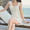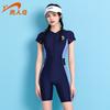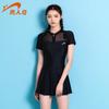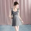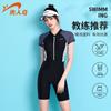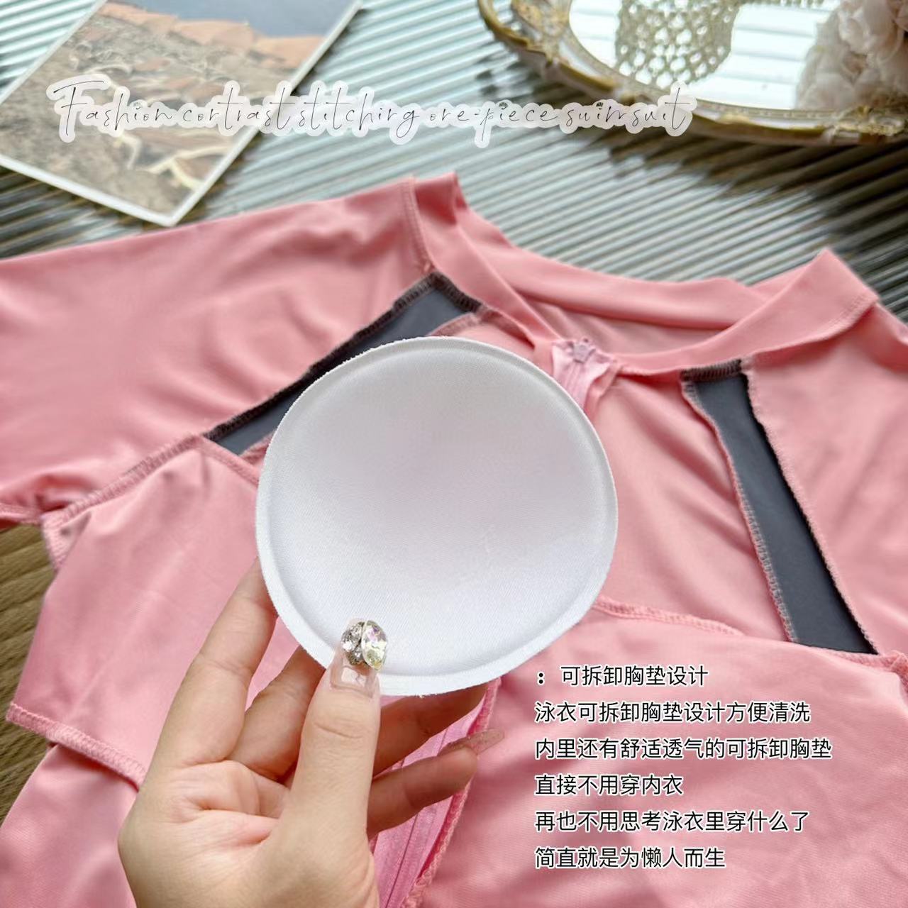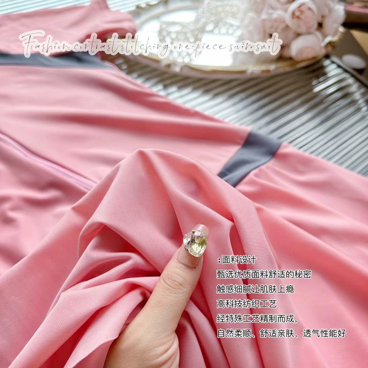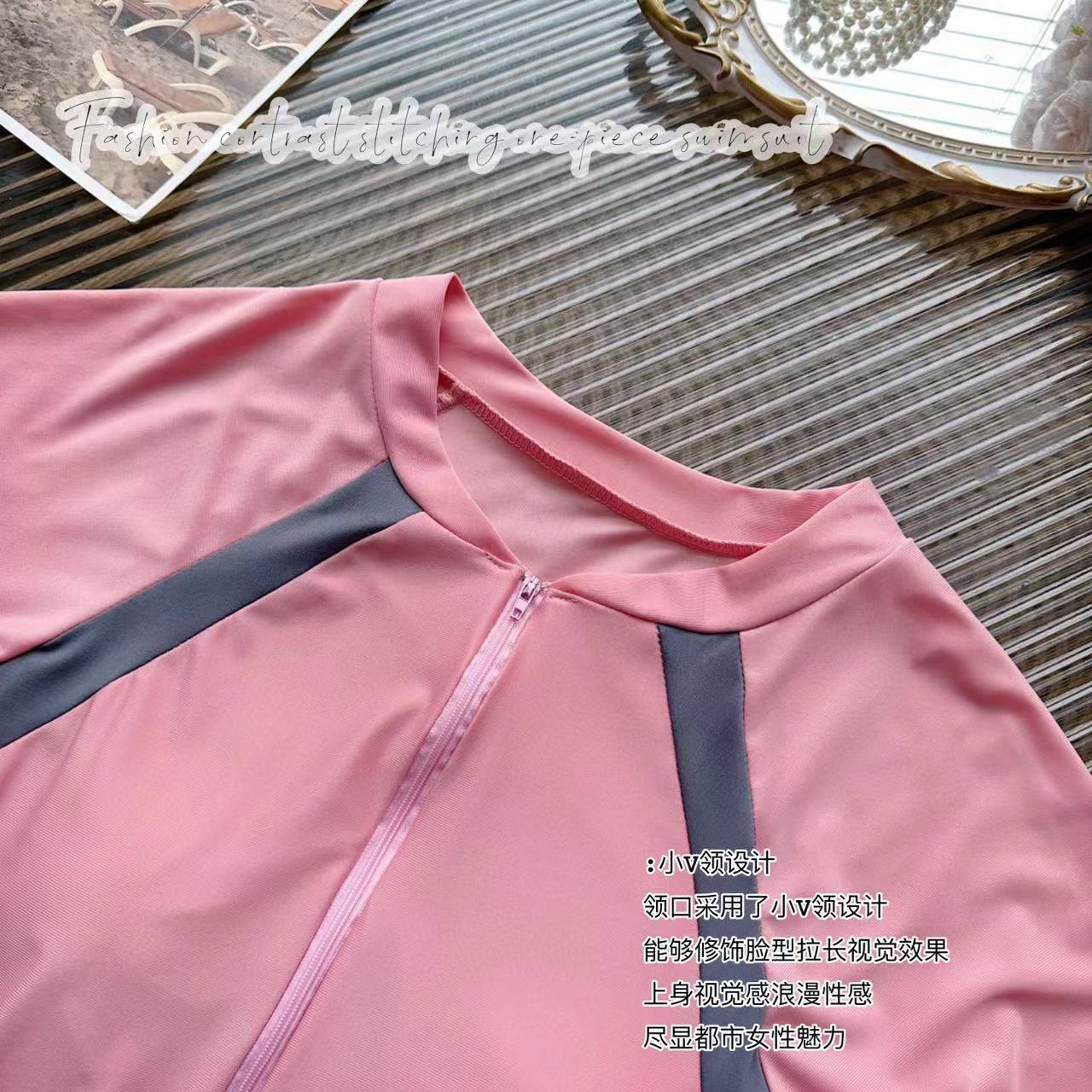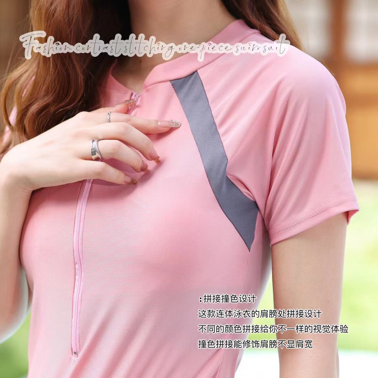 Traje de baño de una pieza con costuras de color en contraste para mujer, que cubre el vientre, adelgazamiento de moda, falda delgada conservadora, traje de baño para nadar al aire libre con protección solar.