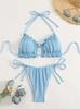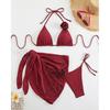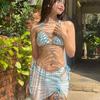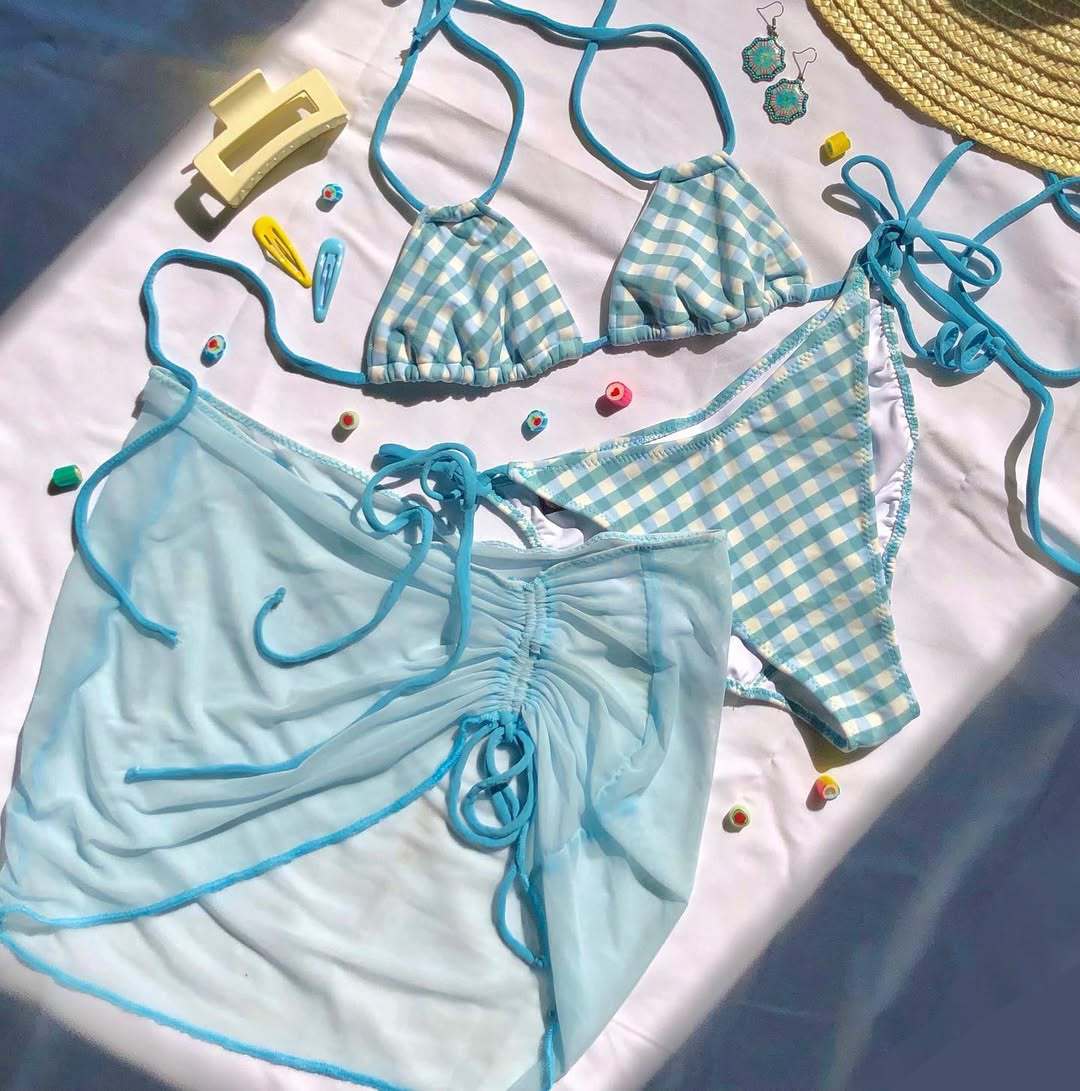 2025 Nuevo Bikini de Verano Transfronterizo Conjunto de Tres Piezas Sexy Fresco a Cuadros Traje de Baño para Vacaciones de Playa para Mujer Aguas Termales