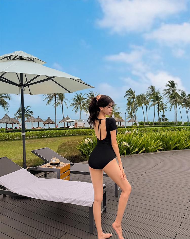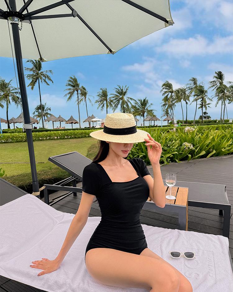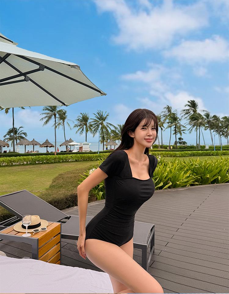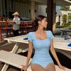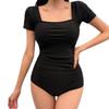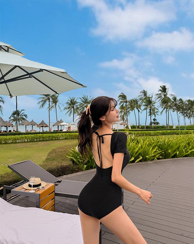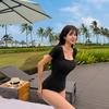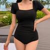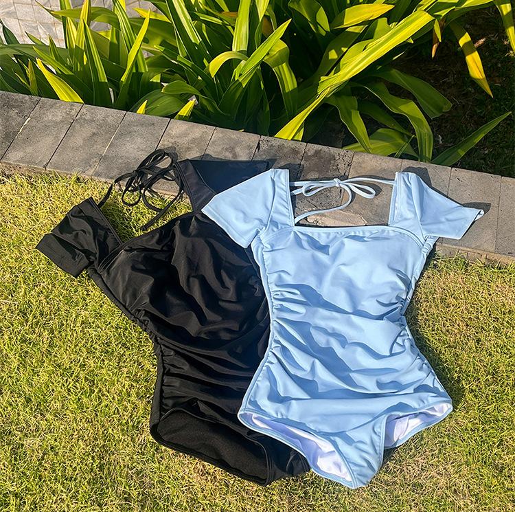 Traje de Baño Coreano Estilo Ins Retro Simple de Manga Corta de Secado Rápido Ajustado Adelgazante Traje de Baño de Una Pieza Traje de Baño de Mujer Traje de Baño
