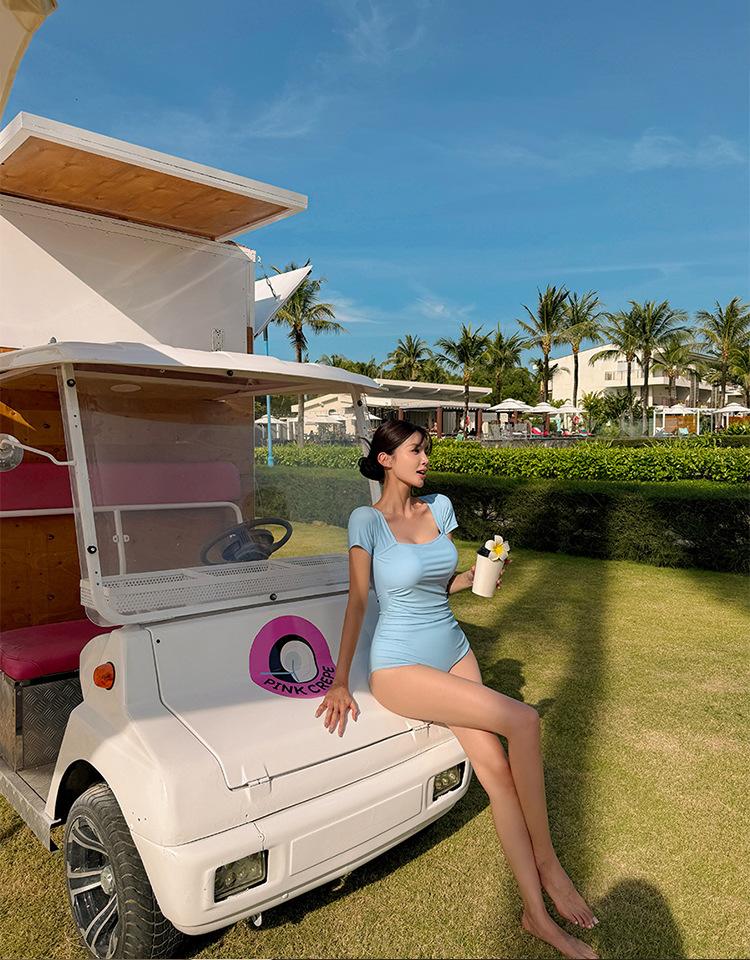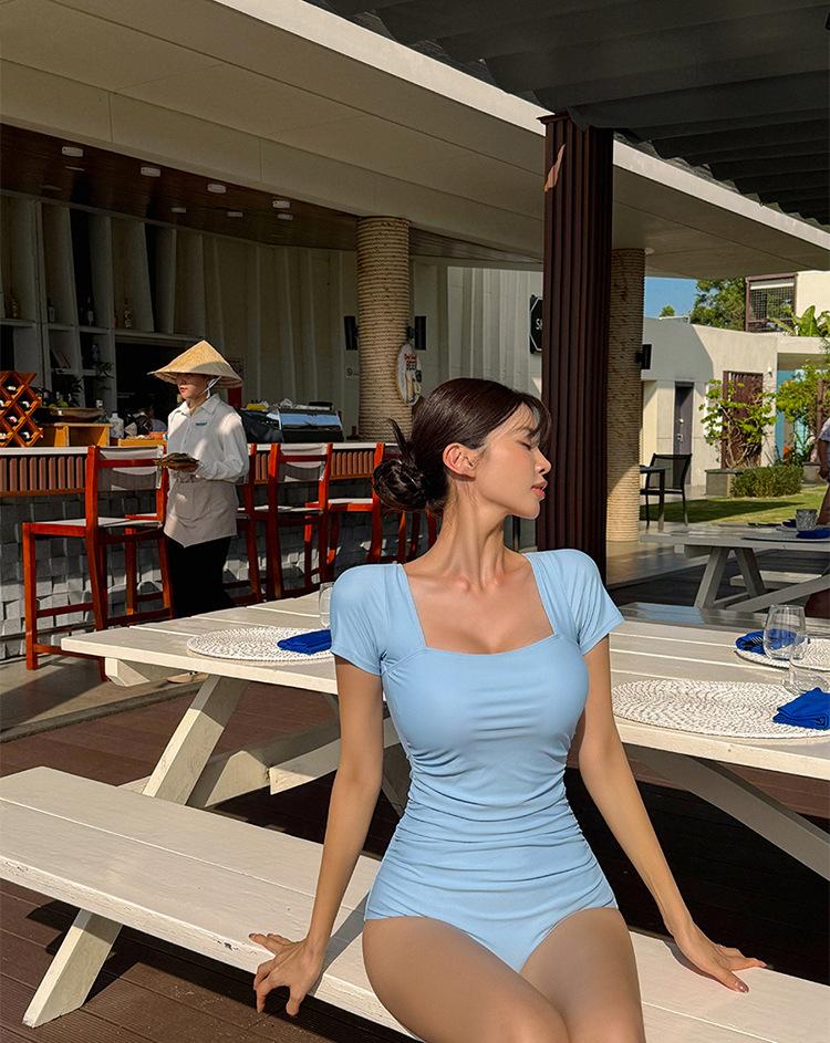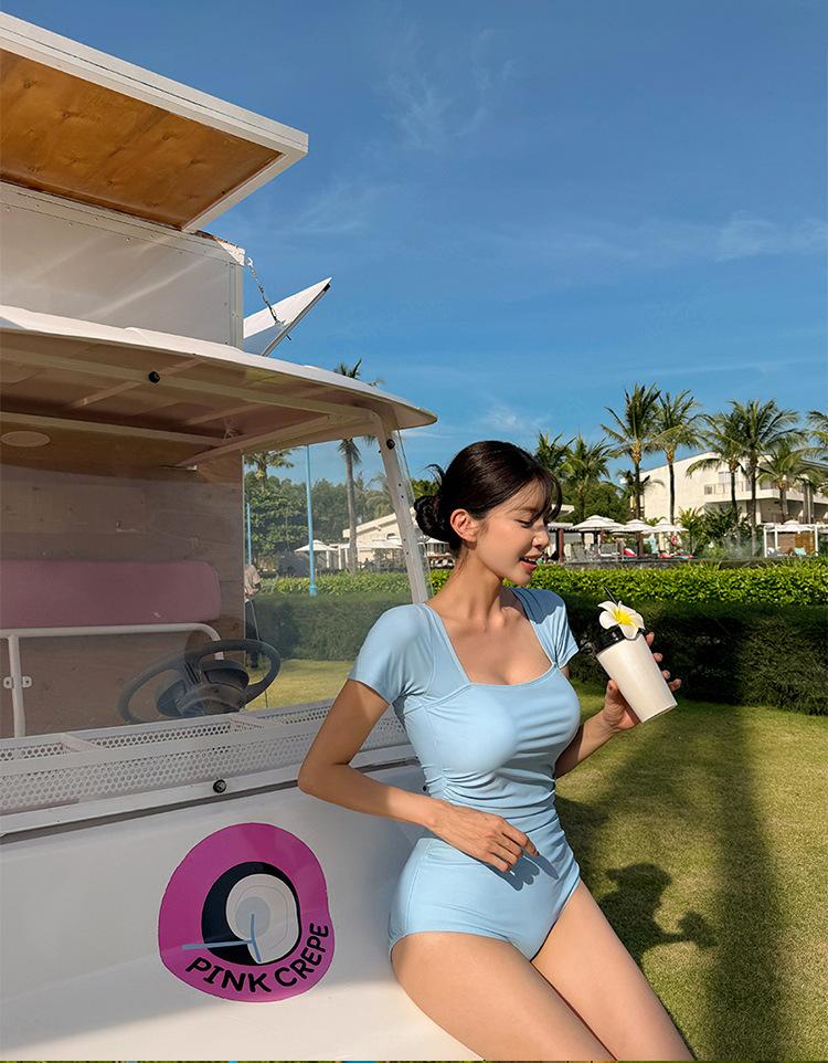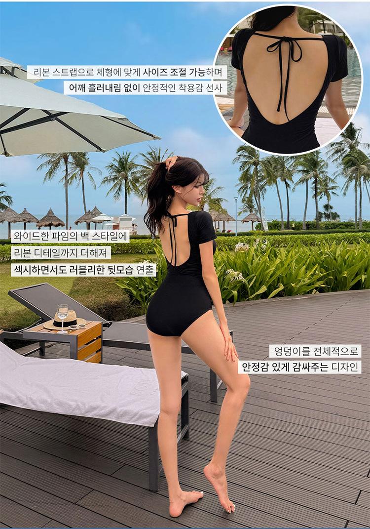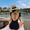 Traje de Baño Coreano Estilo Ins Retro Simple de Manga Corta de Secado Rápido Ajustado Adelgazante Traje de Baño de Una Pieza Traje de Baño de Mujer Traje de Baño