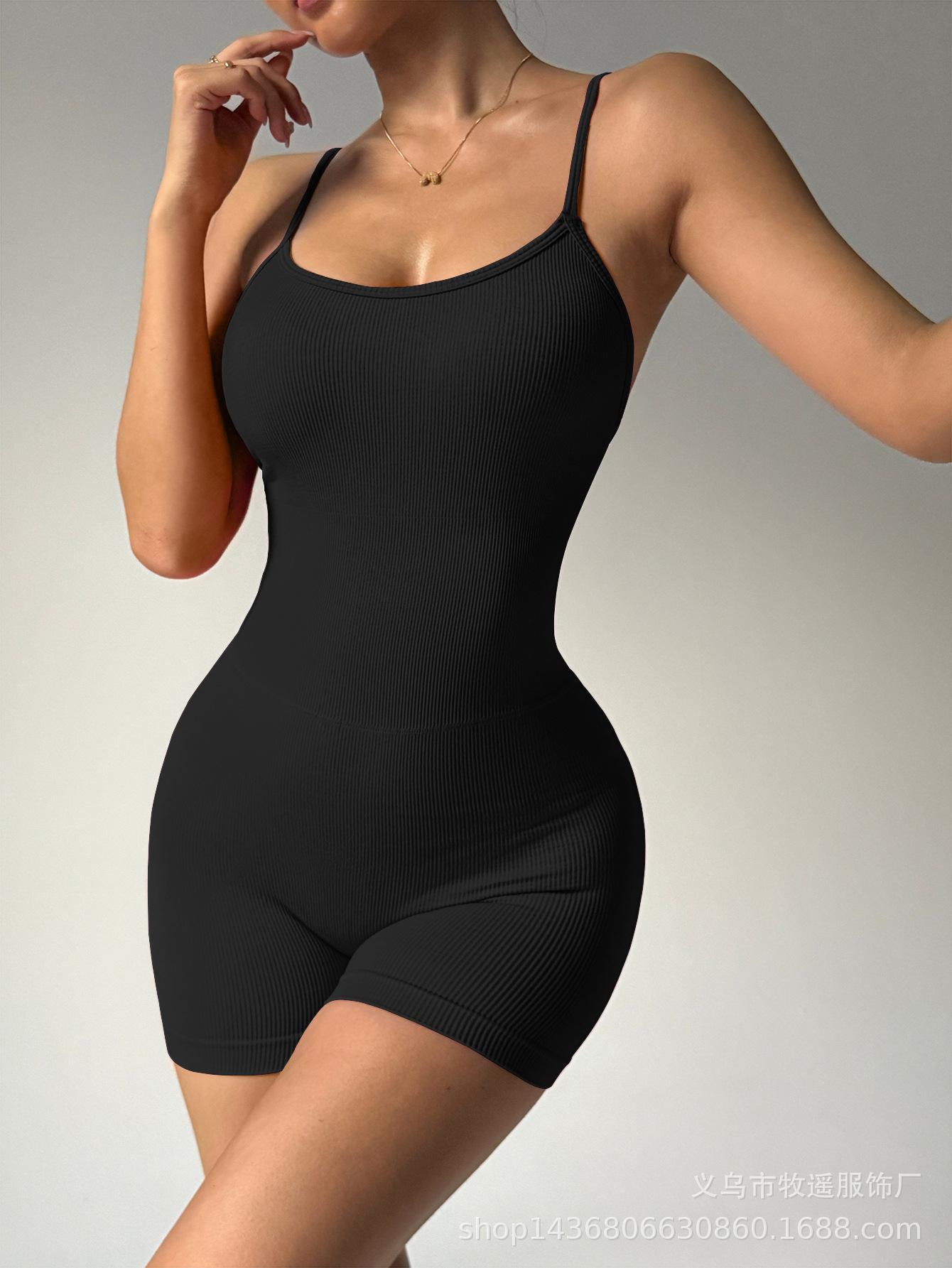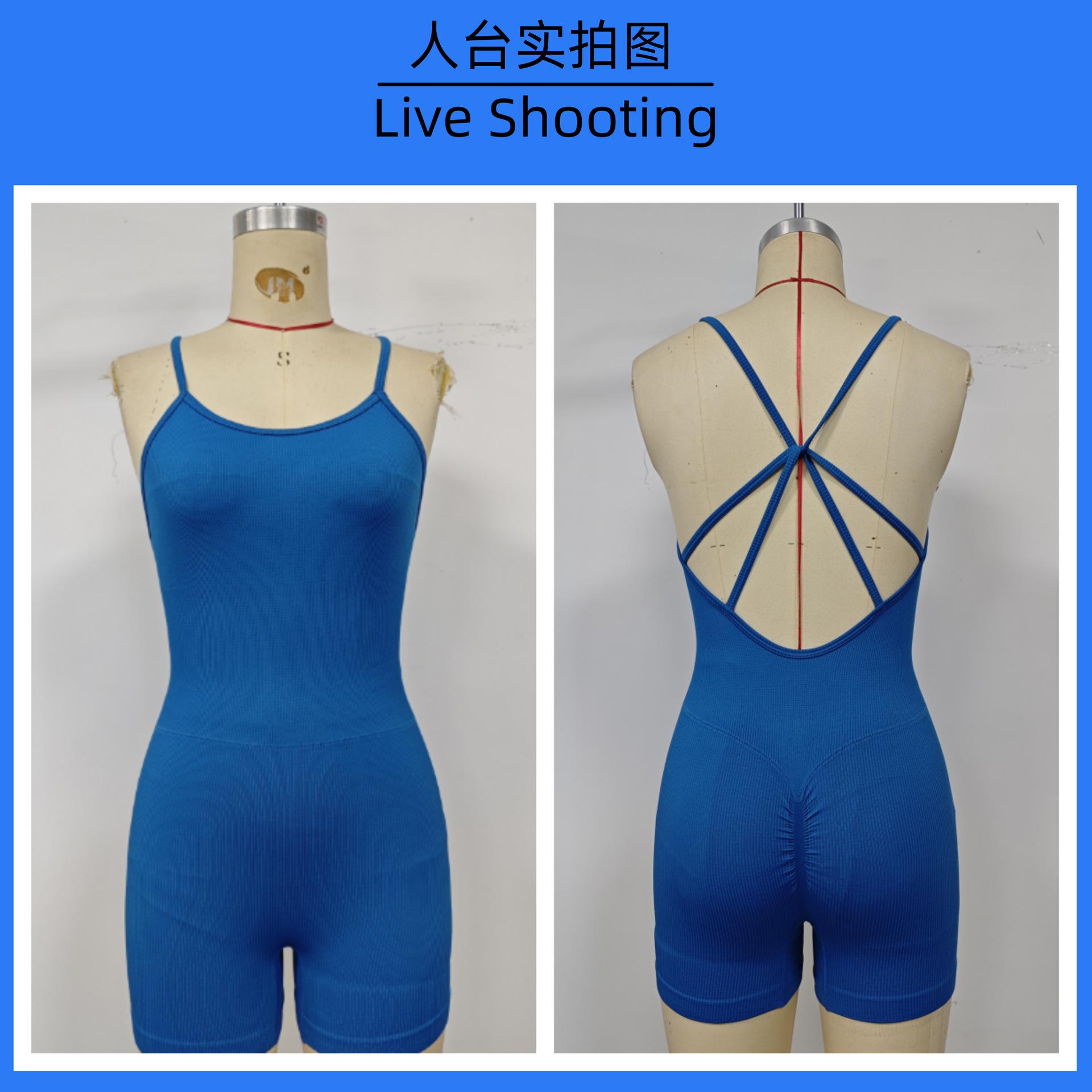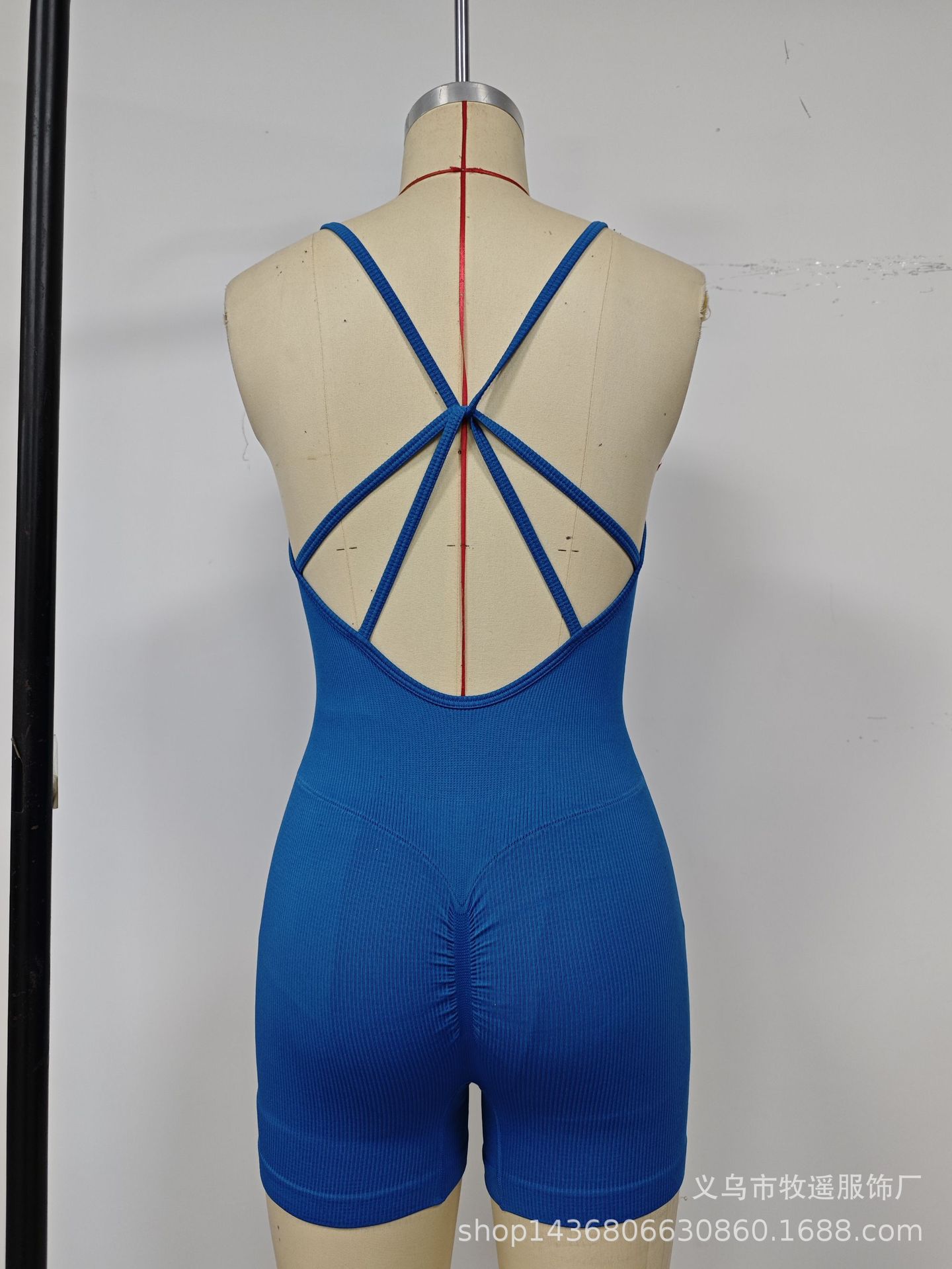 Traje de Yoga Sexy sin Espalda de Una Pieza Trasero de Durazno Secado Rápido Espalda Cruzada Hermosa Sin Almohadilla en el Busto Mono Ajustado de Fitness Shorts