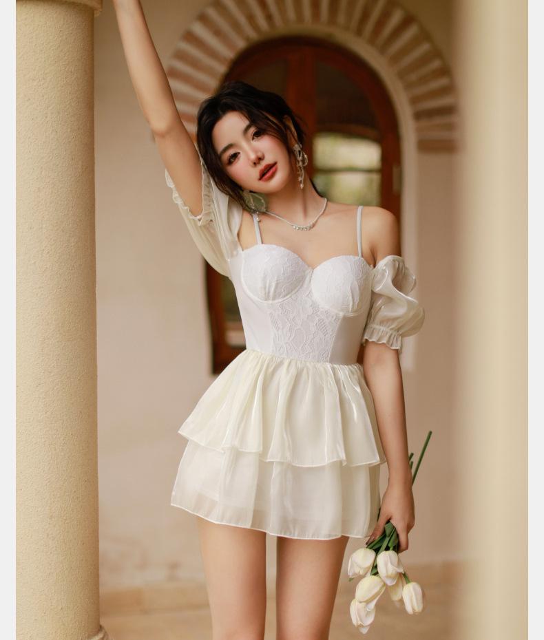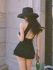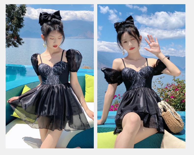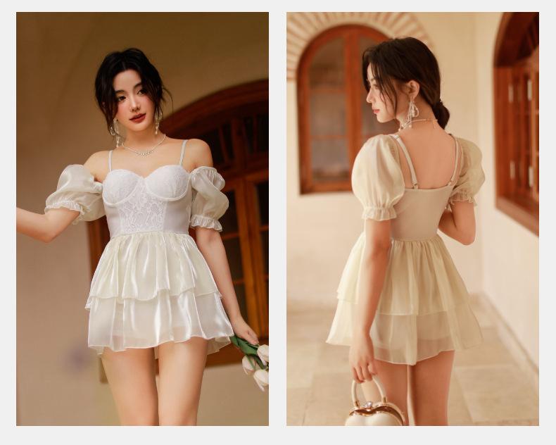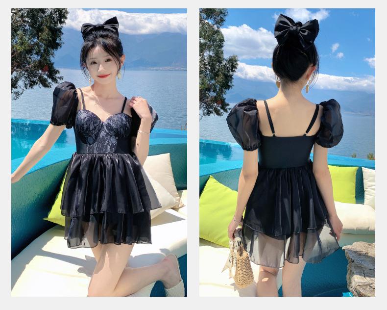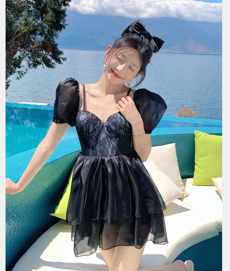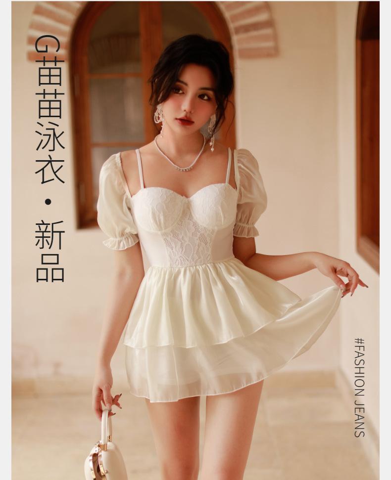 Traje de Baño Nuevo 2025 para Mujer Manga Corta de Encaje Sexy Conservador Adelgazante Cubre Vientre Estilo Lujuria Pura Traje de Baño de Verano para Mujer