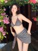 Linda Niña con Lazo Pequeño Falda a Cuadros Retro Traje de Baño Bikini Dividido de Tres Piezas para Mujer