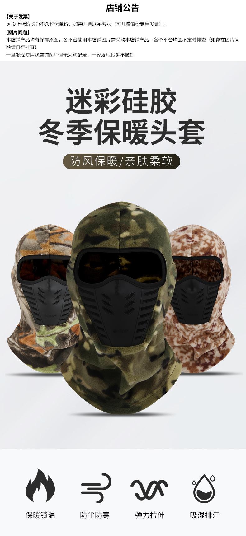 Protección para la cabeza de venta caliente transfronteriza para montar en motocicleta o bicicleta, todoterreno, a prueba de polvo, transpirable, camuflaje, cálida, máscara de silicona