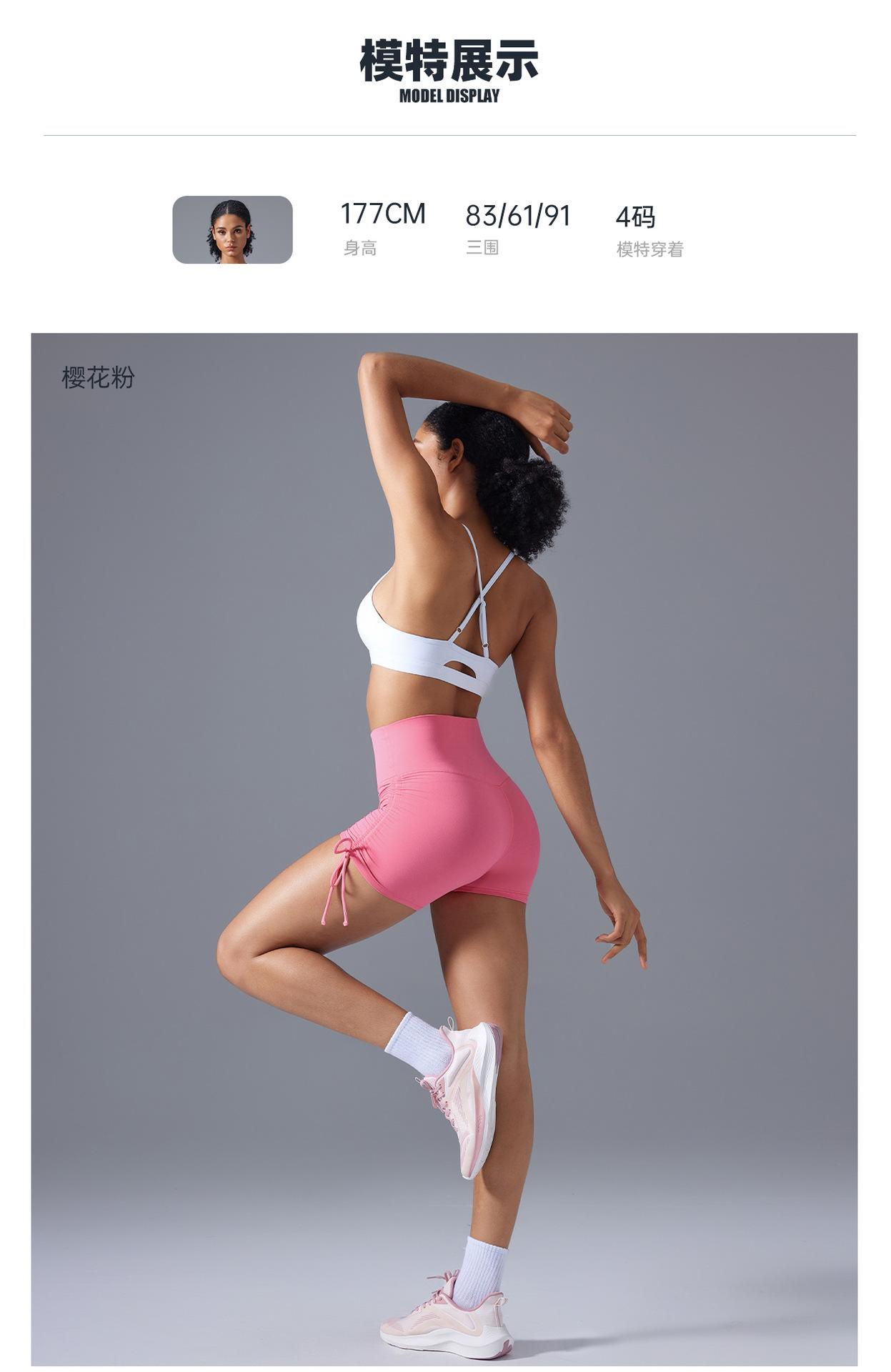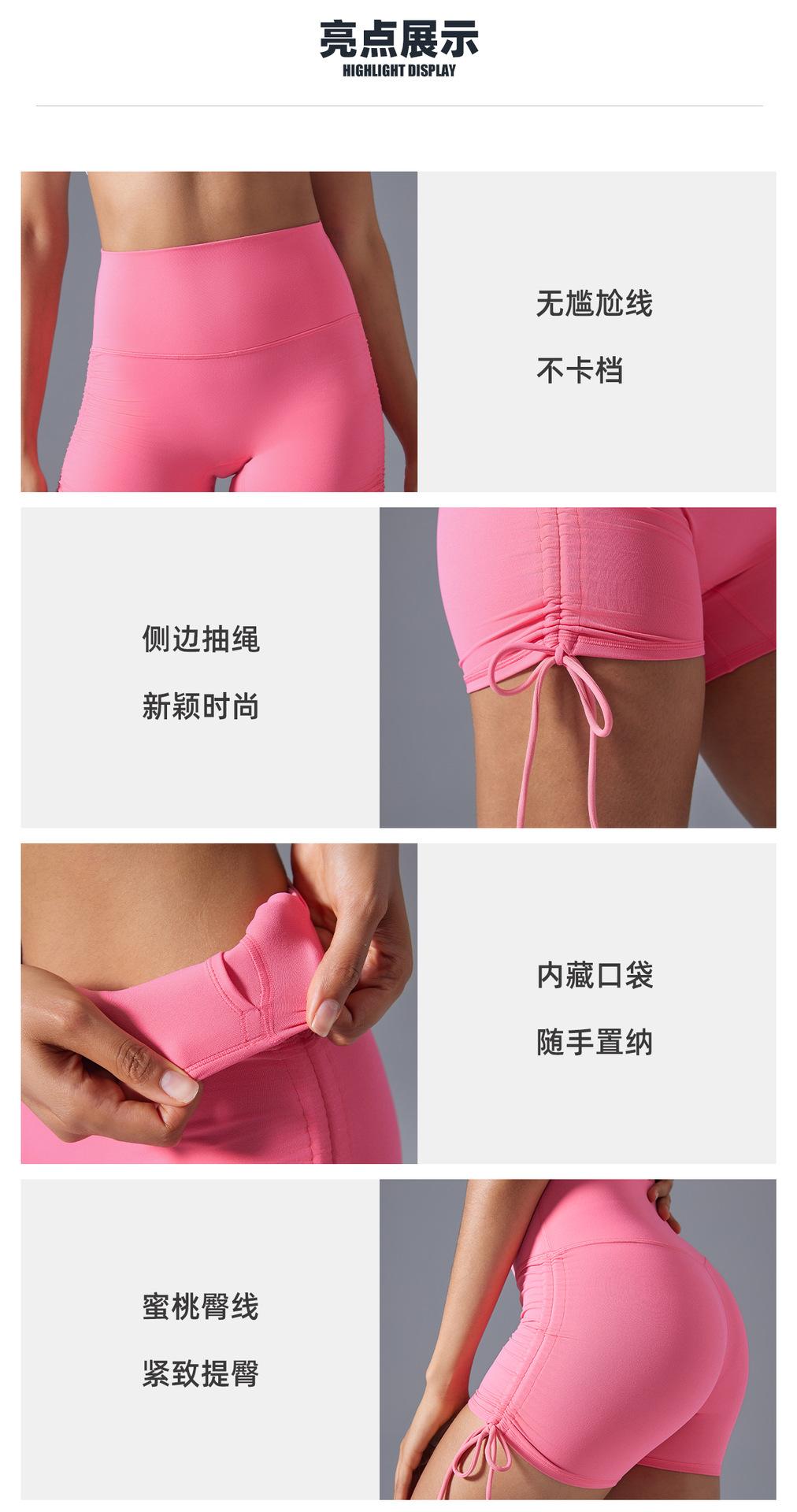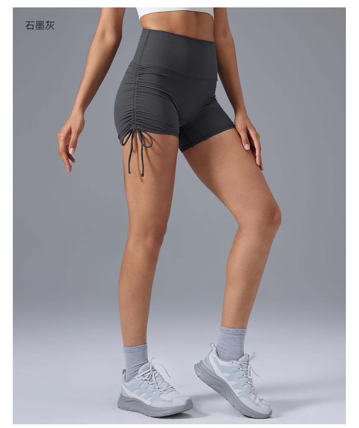 Pantalones de yoga de tres puntos desnudos para mujer, pantalones cortos deportivos ajustados con cordón de verano, cintura alta, cadera, fitness, pantalones cortos de ciclismo D25109