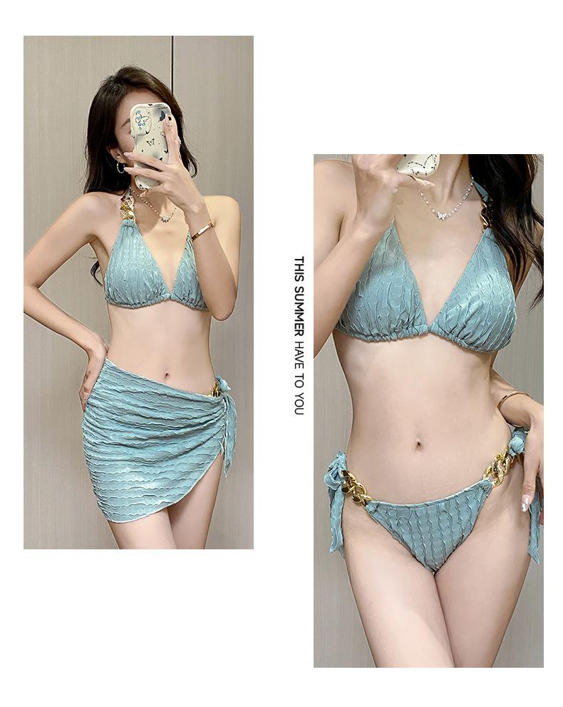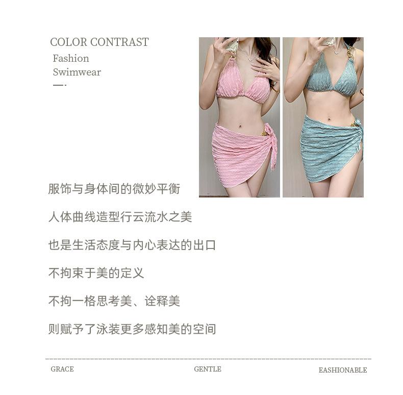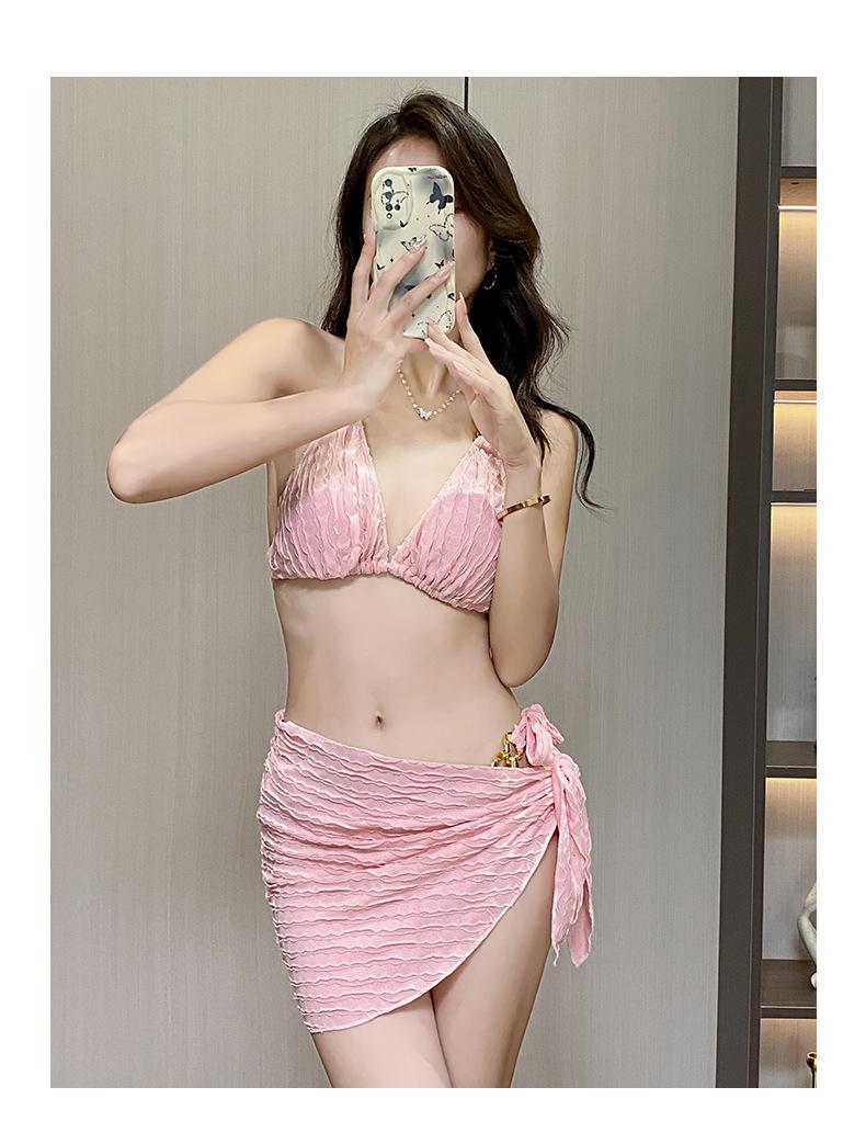 Bikini Traje de bikini Traje de baño para mujer Nuevo Sexy Aguas termales Dividido Conjunto de tres piezas Celebridad de Internet Vacaciones Junto al mar Traje de baño