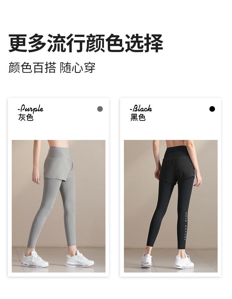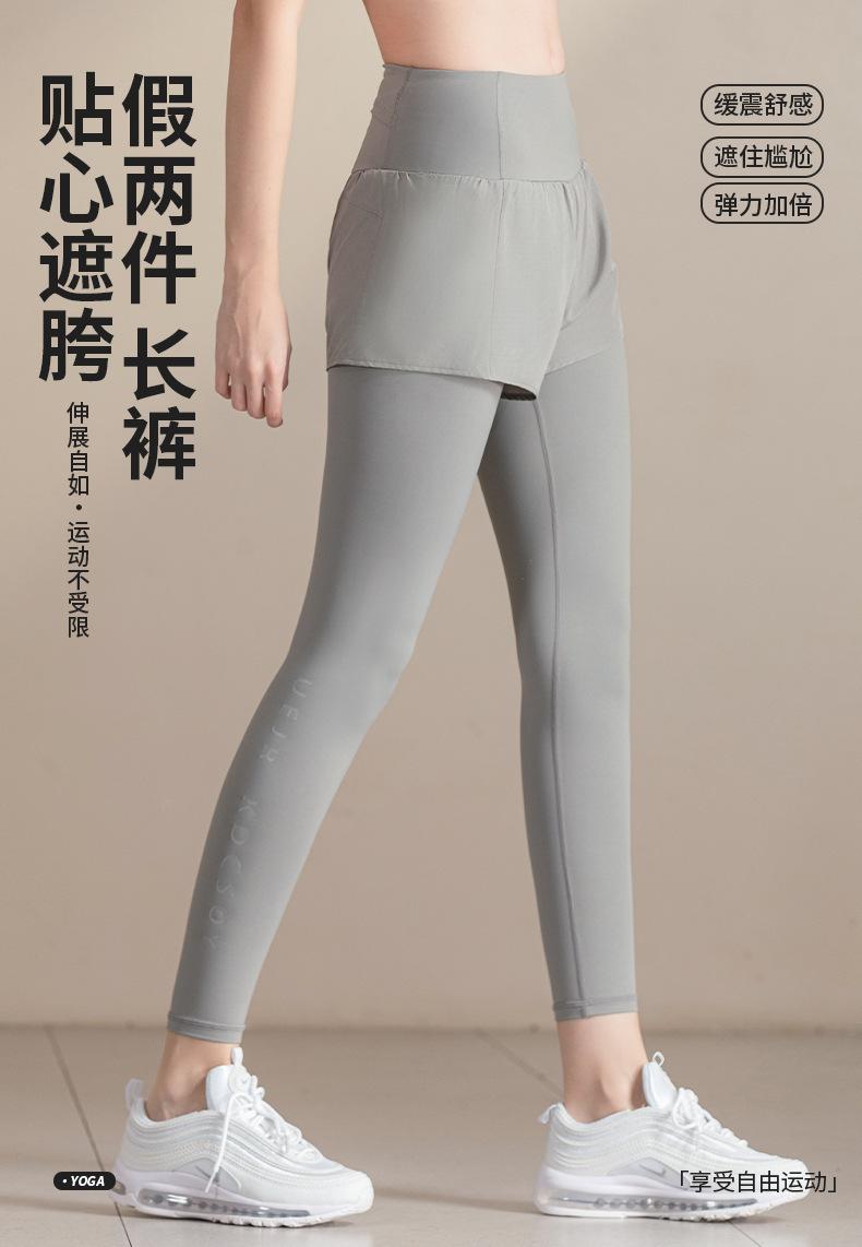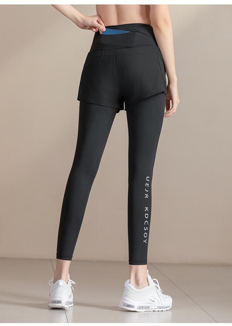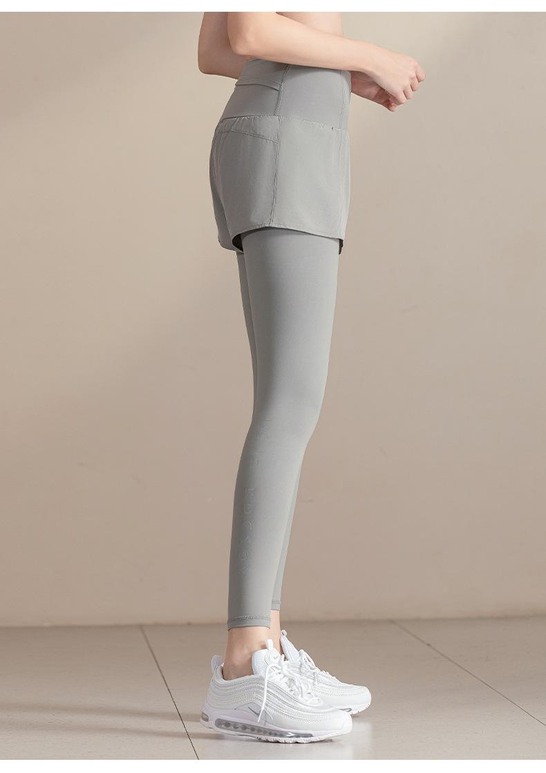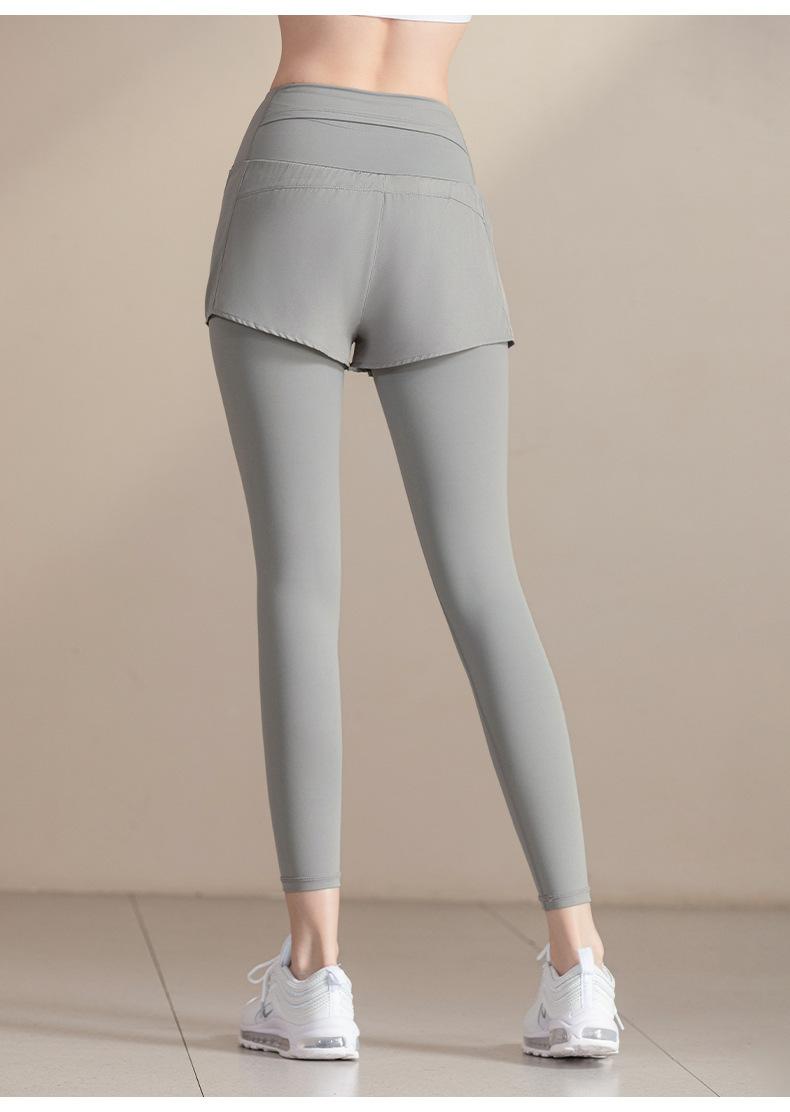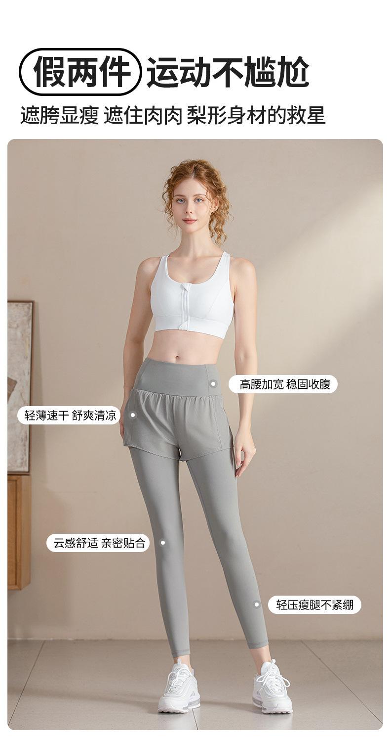 Pantalones de Yoga Falsos de Dos Piezas para Mujer, Verano Nuevo Cintura Alta Levanta Glúteos Control de Abdomen Pantalones de Fitness, Pantalones para Correr, Leggings Deportivos Ajustados de Secado Rápido