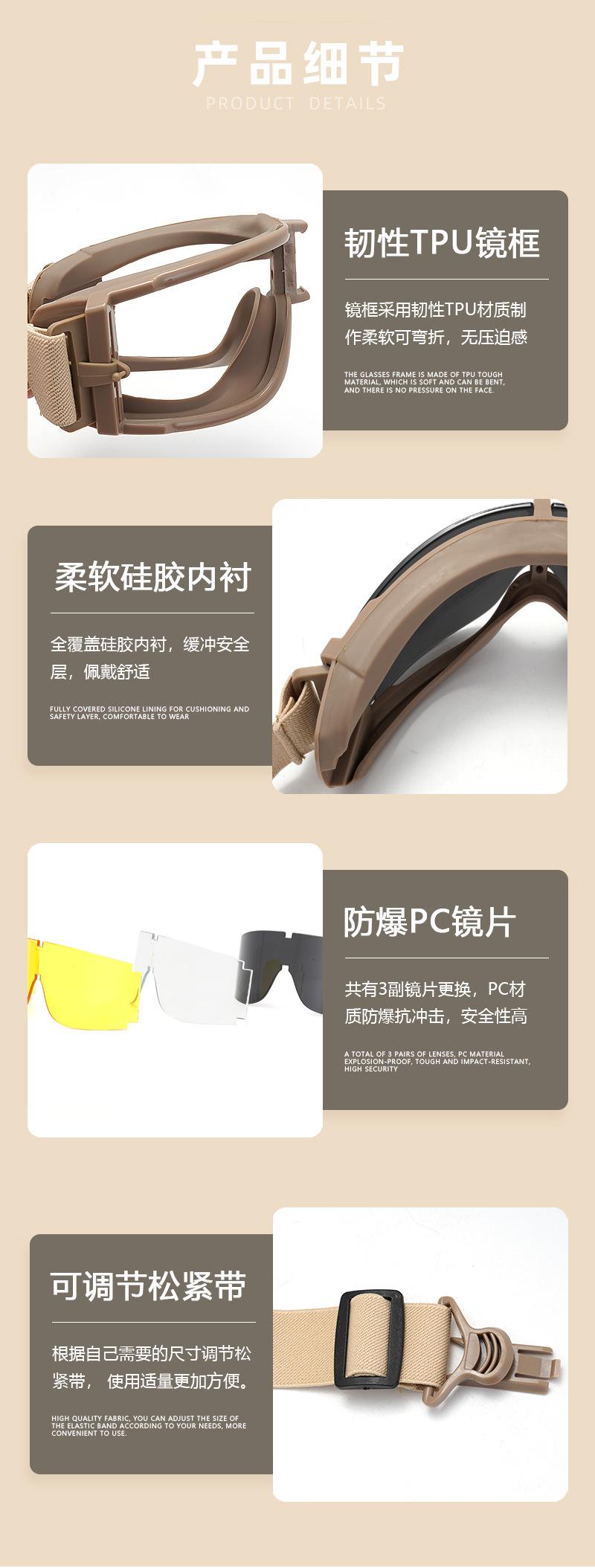 Gafas tácticas versión riel X800 al por mayor, gafas de tiro de tres lentes, para exteriores, equipo militar para fans CS, a prueba de explosiones