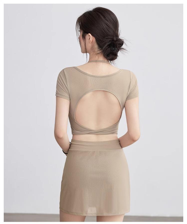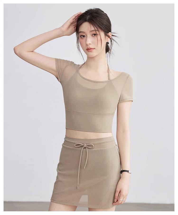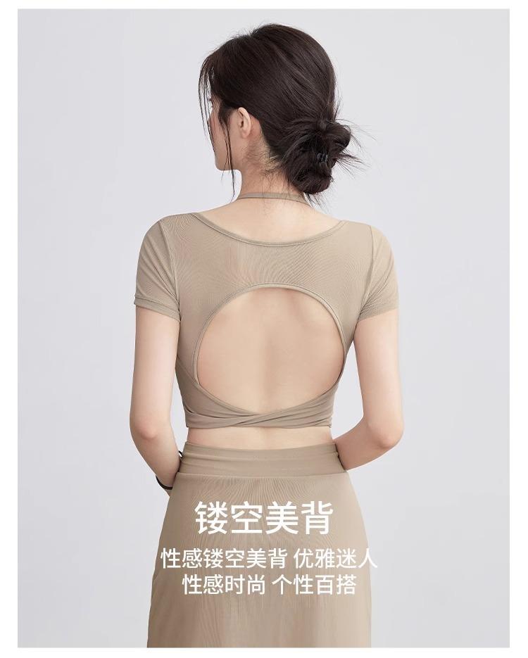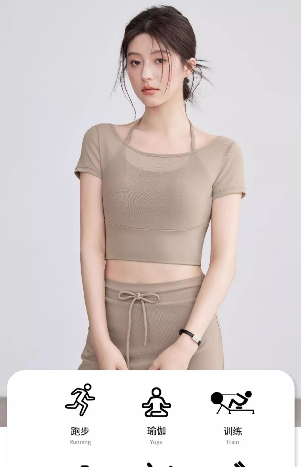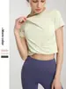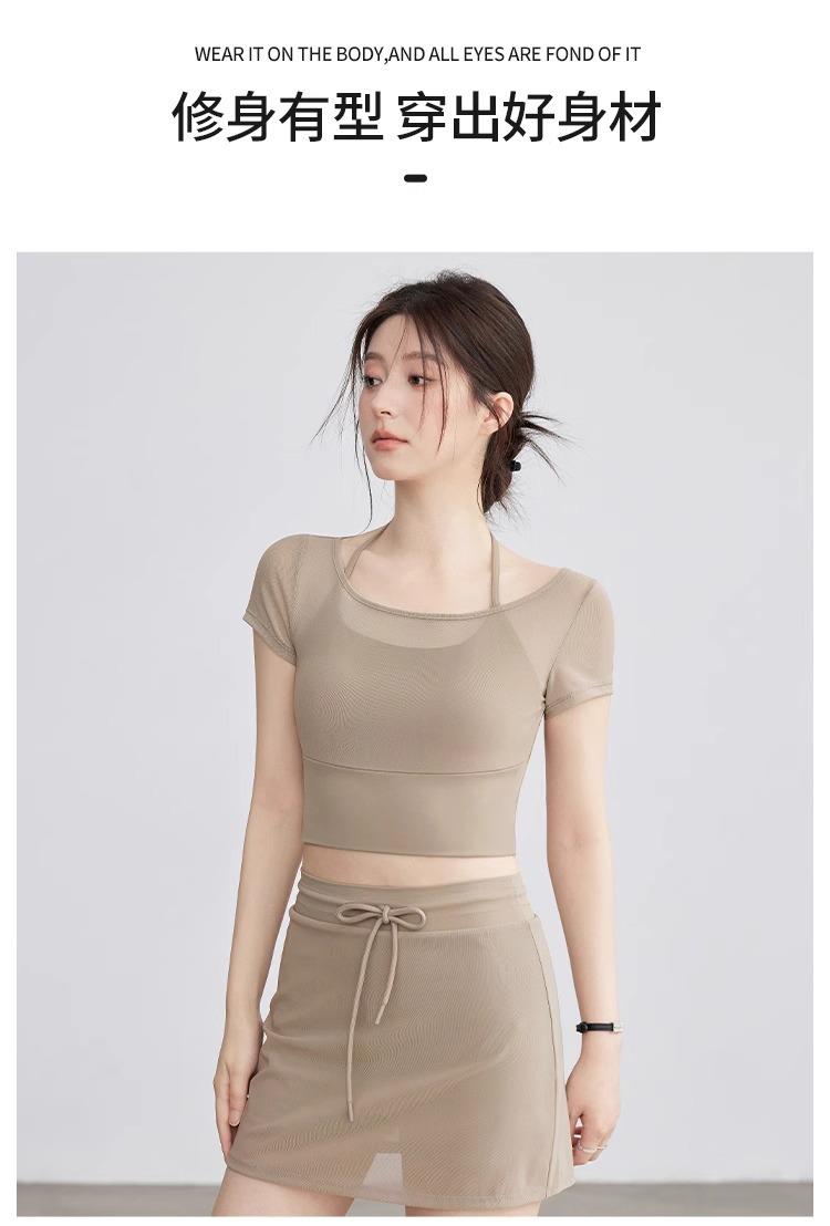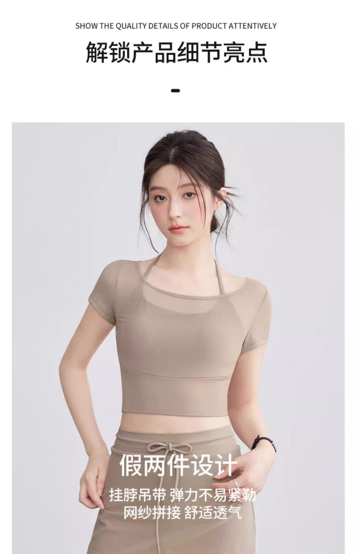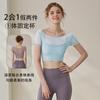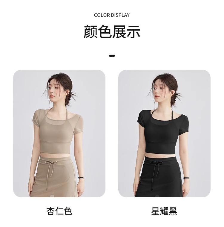 Ropa de Yoga para Mujer Verano Nuevo Manga Corta Entrenamiento Pilates Tops Deportivos con Almohadillas en el Pecho Set de Ropa de Fitness de Malla