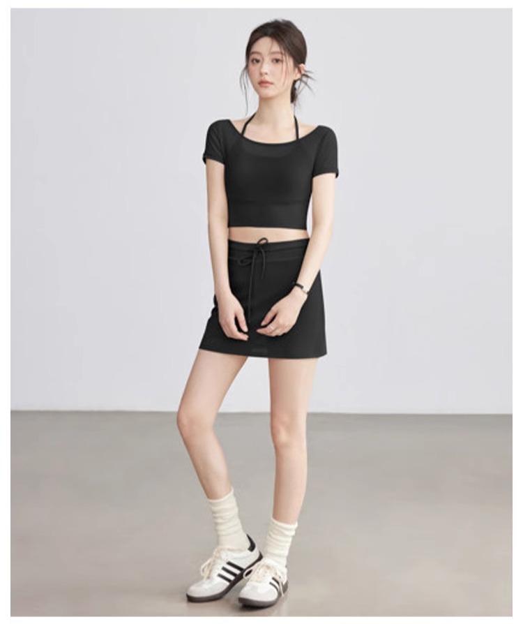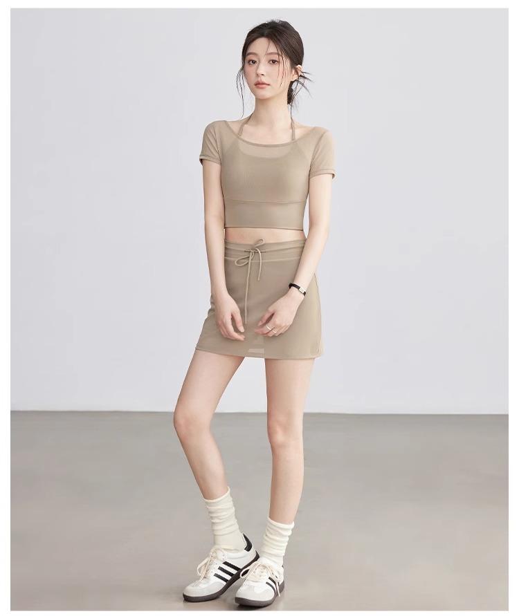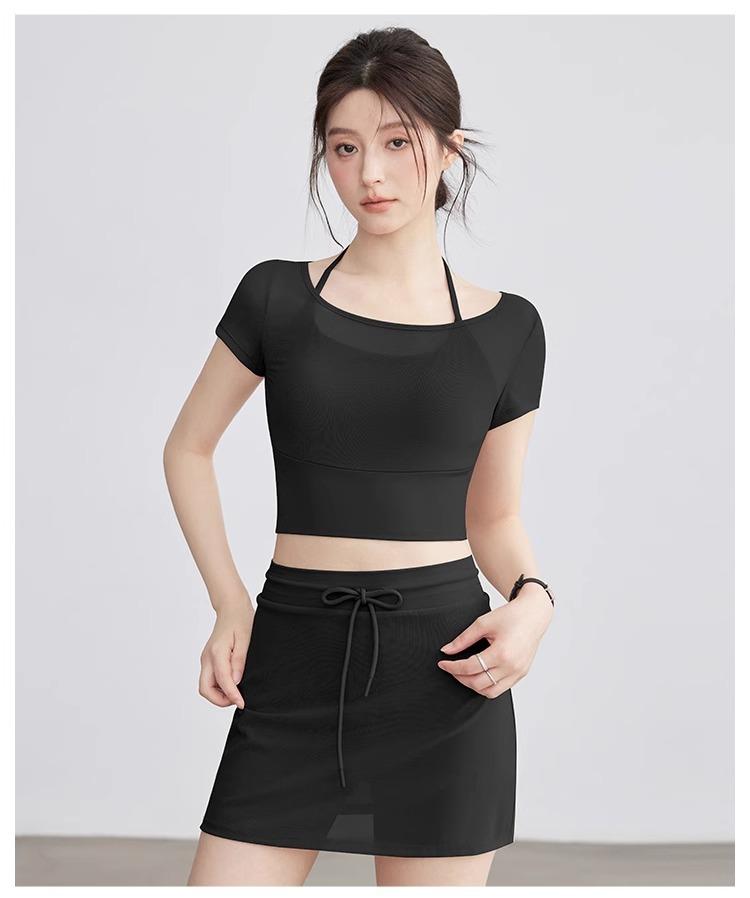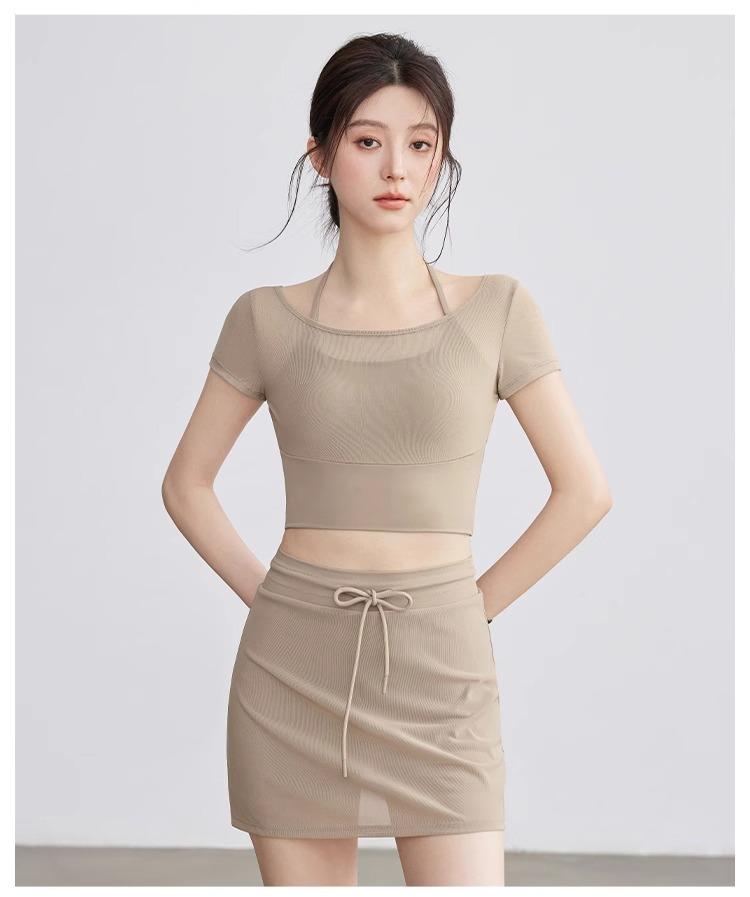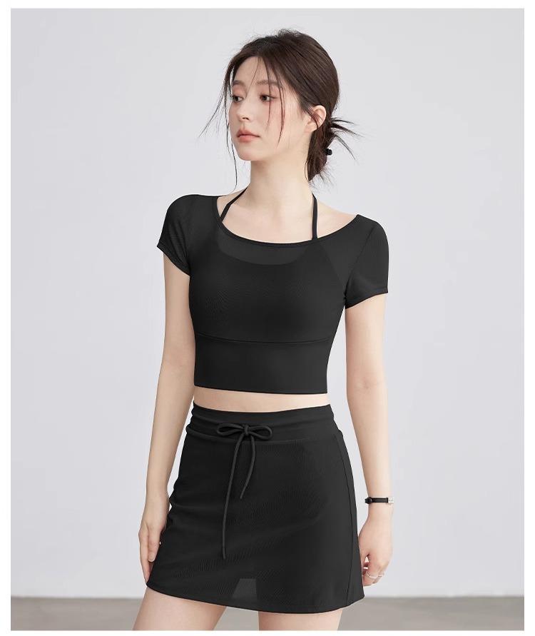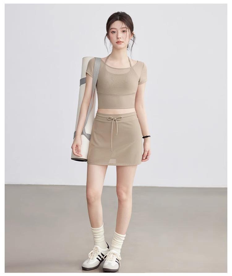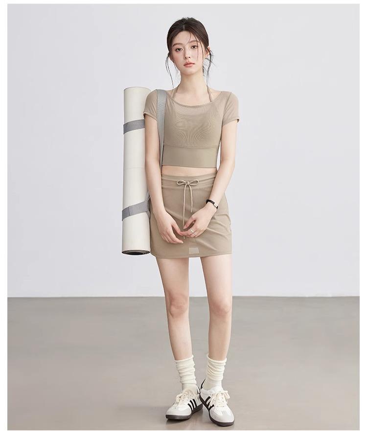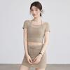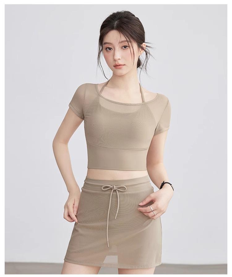 Ropa de Yoga para Mujer Verano Nuevo Manga Corta Entrenamiento Pilates Tops Deportivos con Almohadillas en el Pecho Set de Ropa de Fitness de Malla