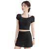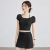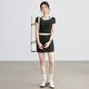 Almond color, Starry black, Almond color tops + almond color knitting skirt [suit recommendation], Starry blac...