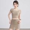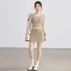 Almond color tops + almond color knitting skirt [suit recommendation]