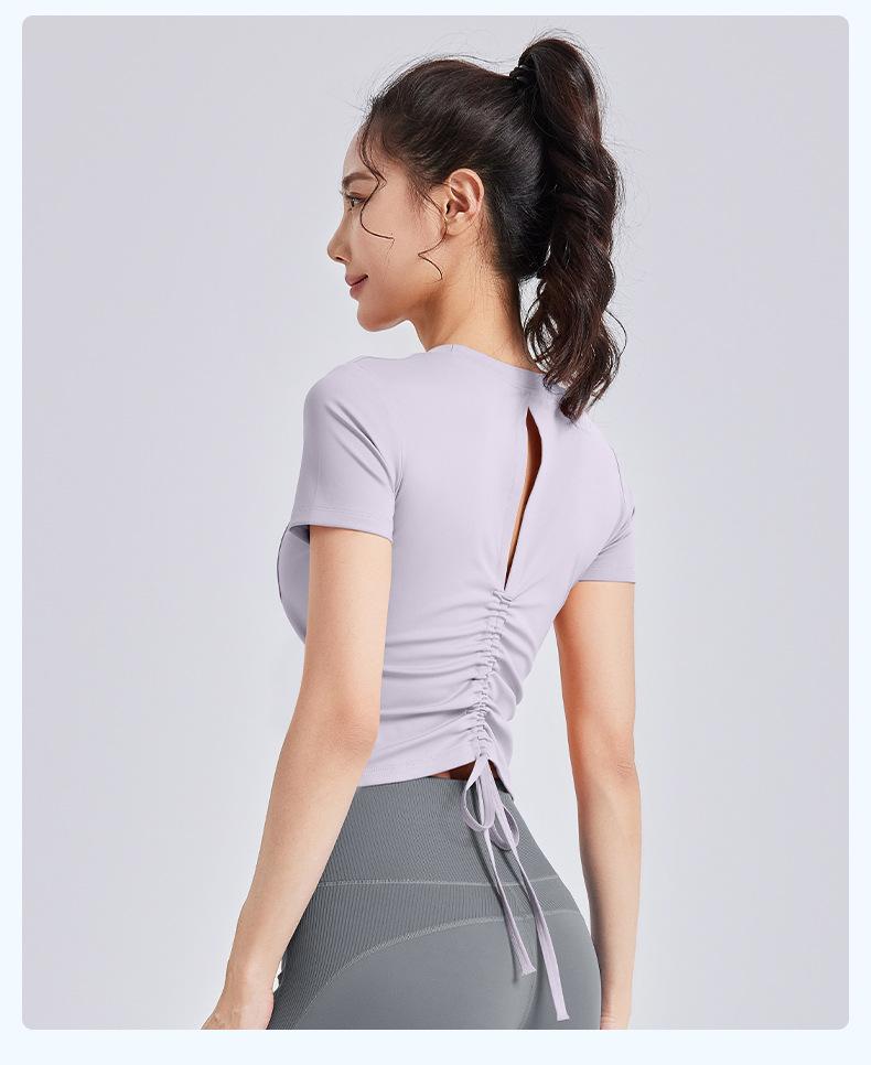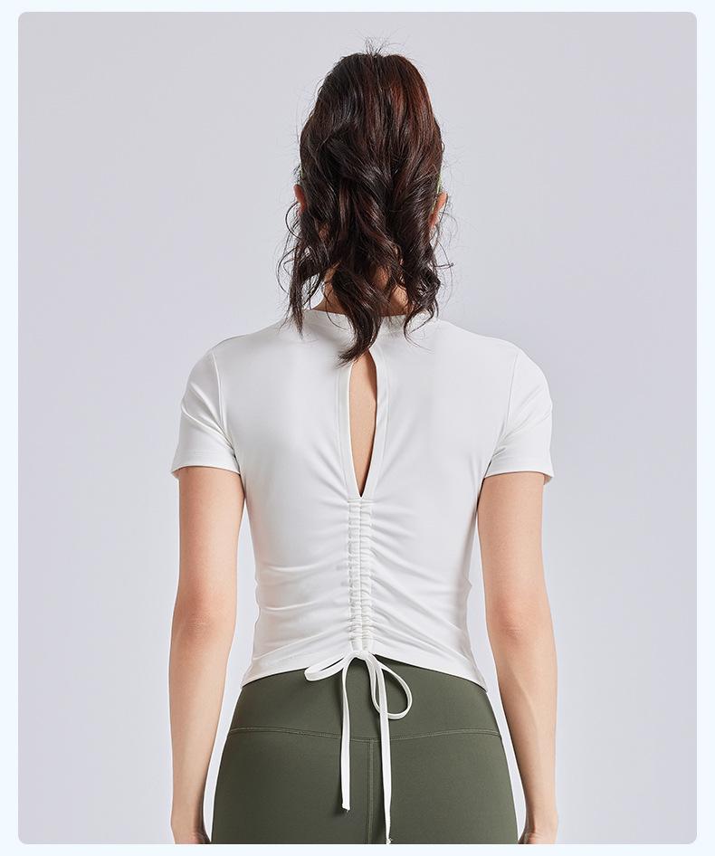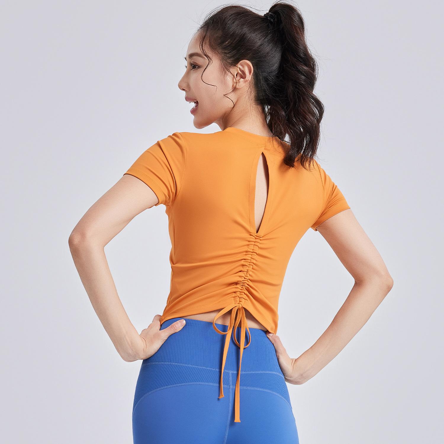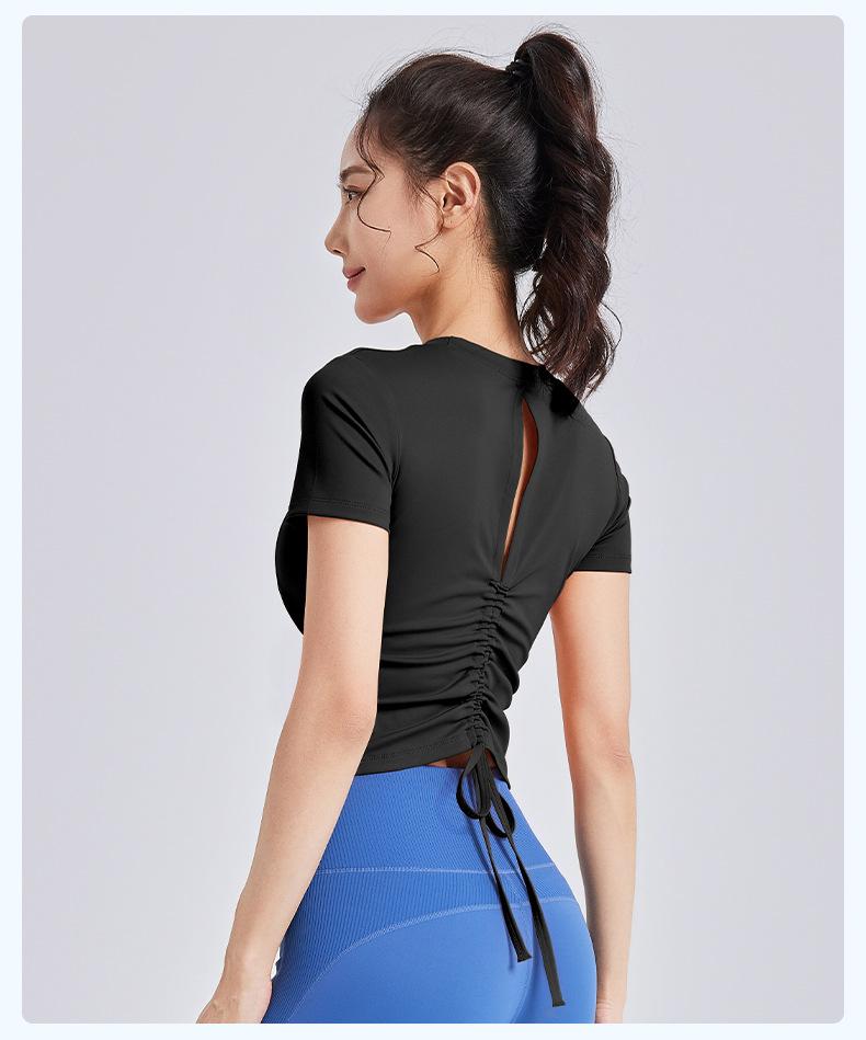 Ropa de Yoga de Verano con Almohadillas en el Pecho, Tirantes con Cordón de Manga Corta para Mujer, Espalda Hermosa, Camiseta Casual para Fitness y Deportes al Aire Libre