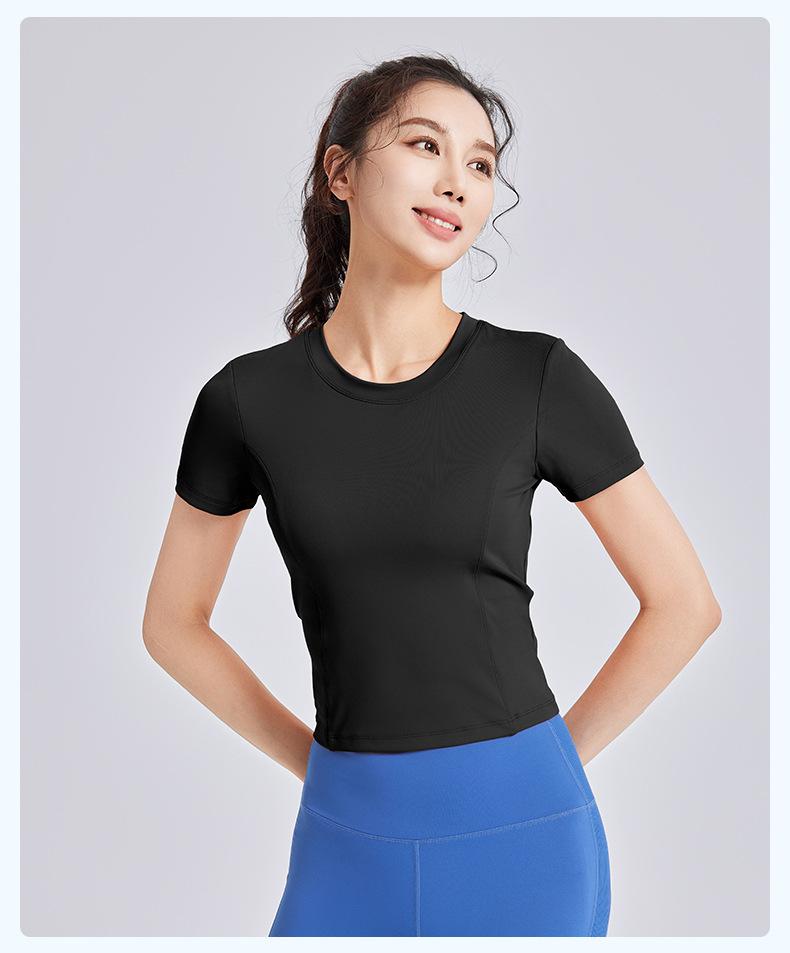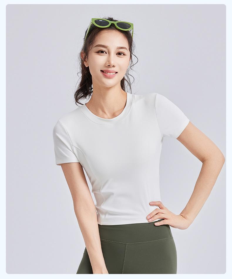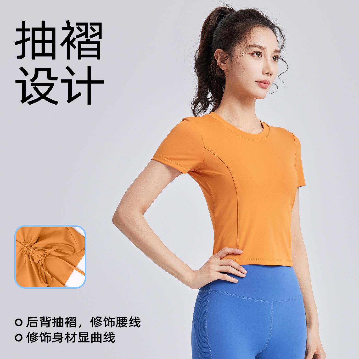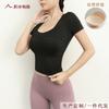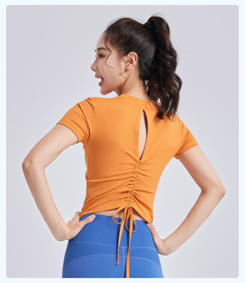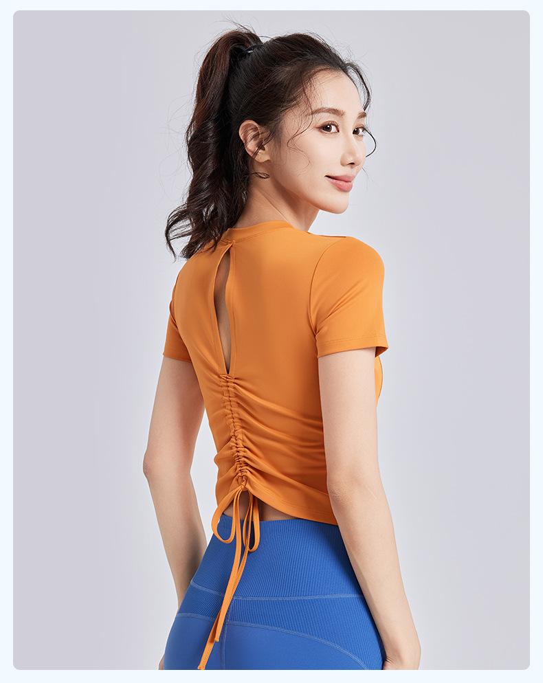 Ropa de Yoga de Verano con Almohadillas en el Pecho, Tirantes con Cordón de Manga Corta para Mujer, Espalda Hermosa, Camiseta Casual para Fitness y Deportes al Aire Libre