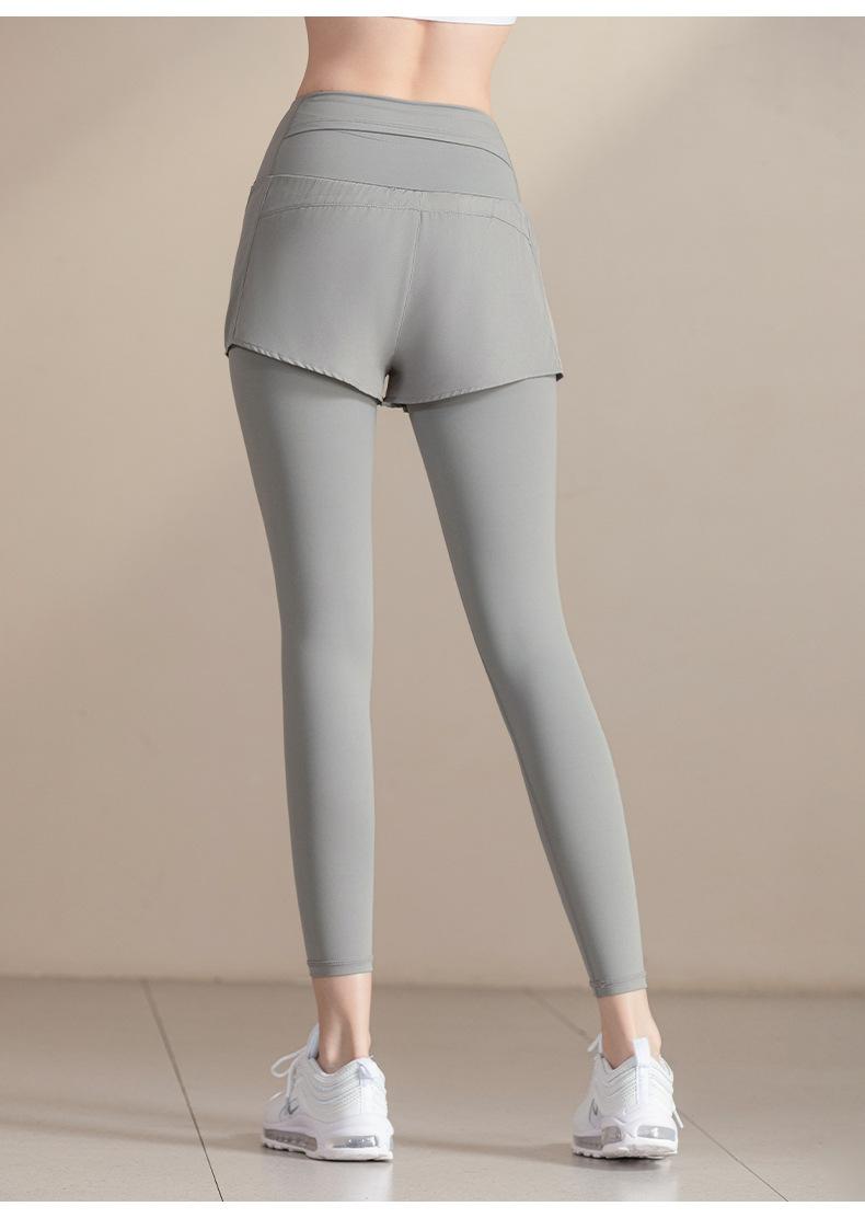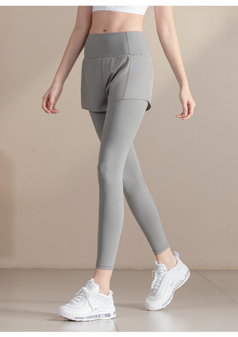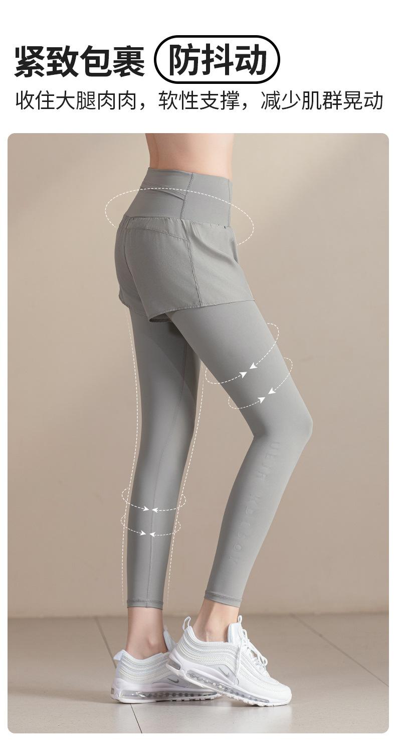 Pantalones de Yoga para Mujer Nuevo Verano Correr Deportes Exterior Falso de Dos Piezas Pantalón Entrenamiento Antiexposición Adelgazante Look Pantalones de Fitness