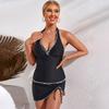 Bikini de Tres Puntos con Tirantes Cuadrados de Tela y Perlas, Lindo y Dulce, Halterneck Dividido para Mujer, Dropshipping