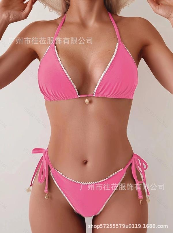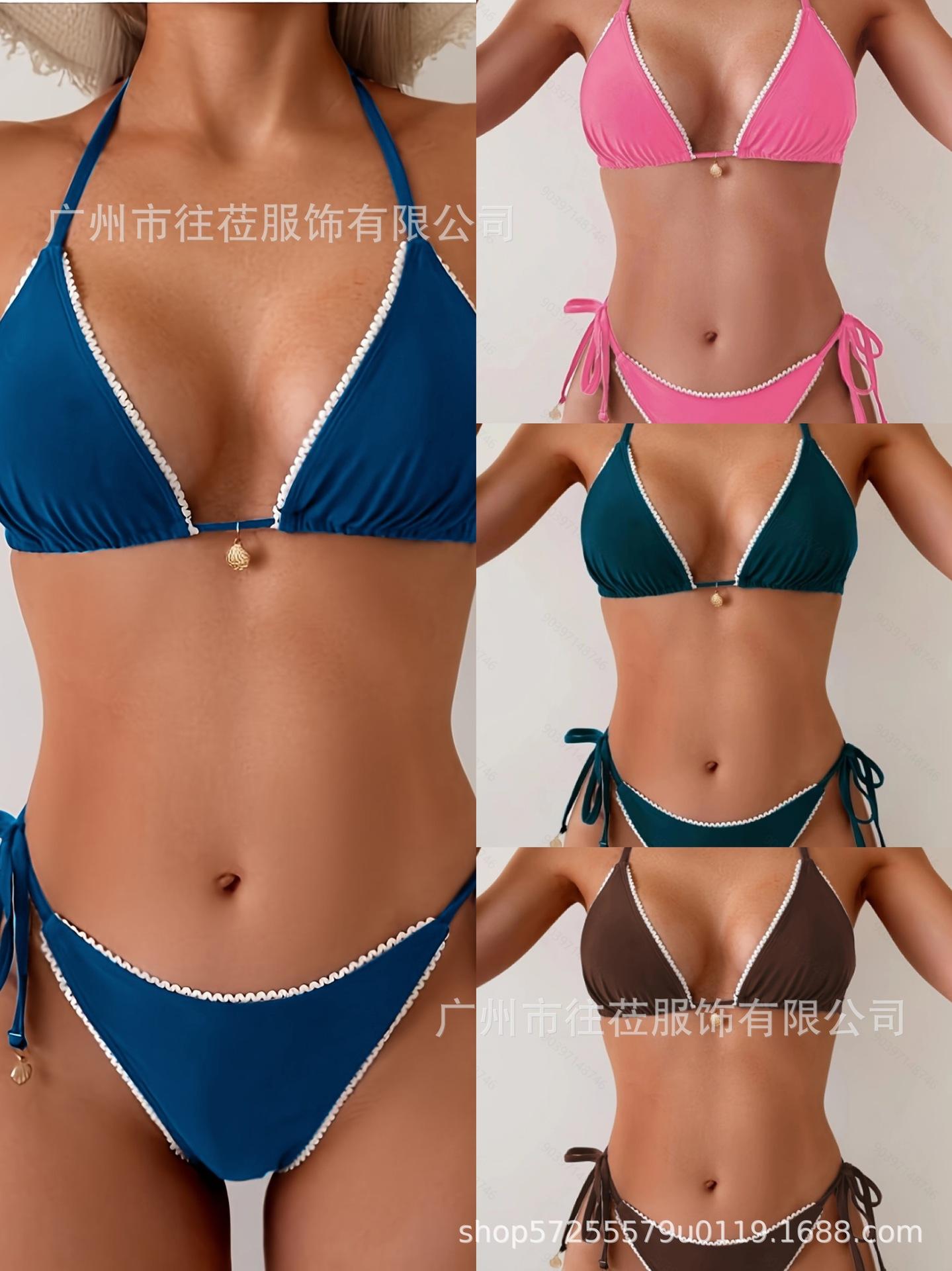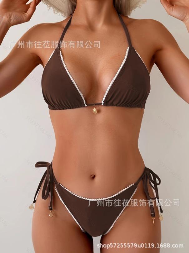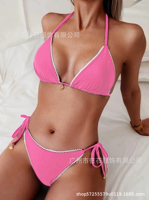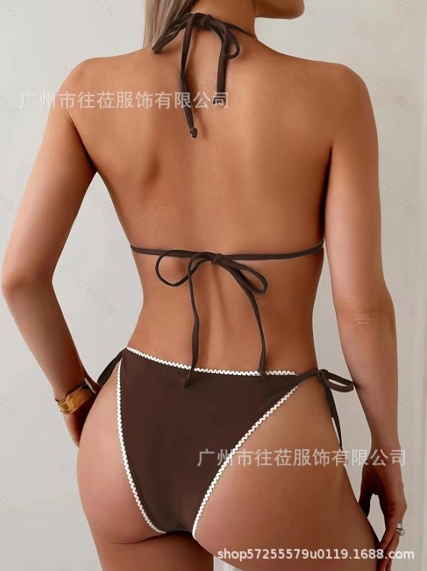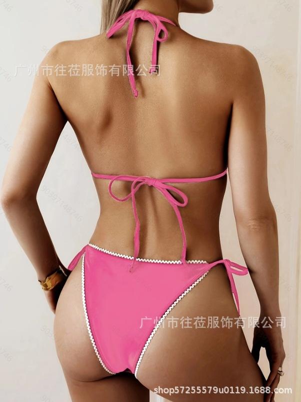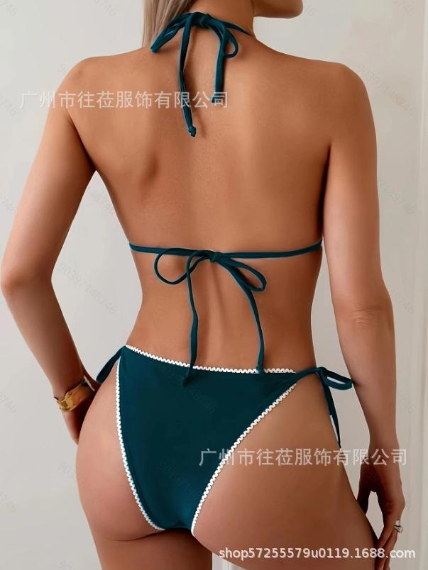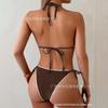 Moda para Mujer Color Sólido Sexy Encaje Halter Ajustable Sexy Traje de Baño Bikini para Mujer