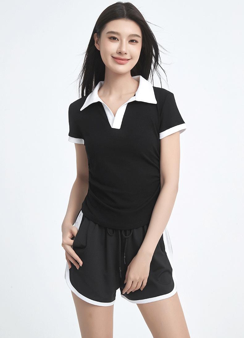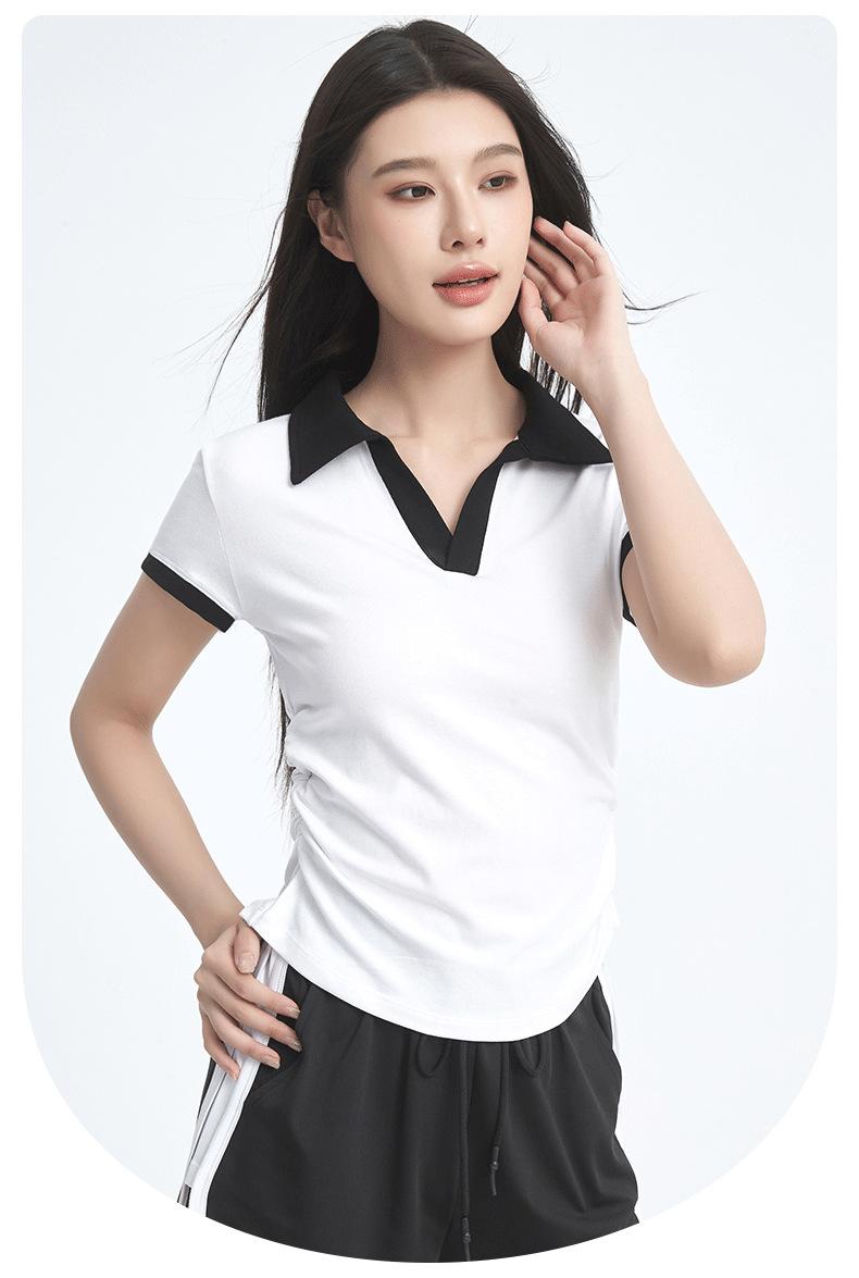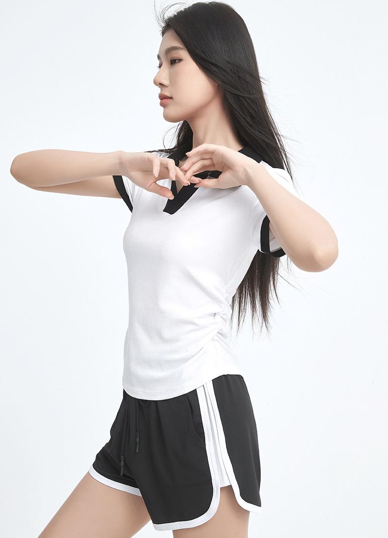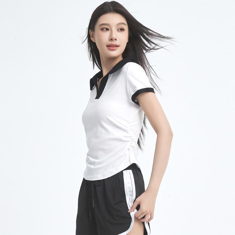 Camiseta deportiva de solapa cruzada con mapa de seda para mujer, de verano, de alta gama para yoga, entrenamiento, correr, fitness