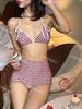 Nuevo Bikini Triángulo Retro a Cuadros Estilo Japonés con Tirantes y Lazo para Chica Hot Traje de Baño de Alta Gama para Mujer para Aguas Termales