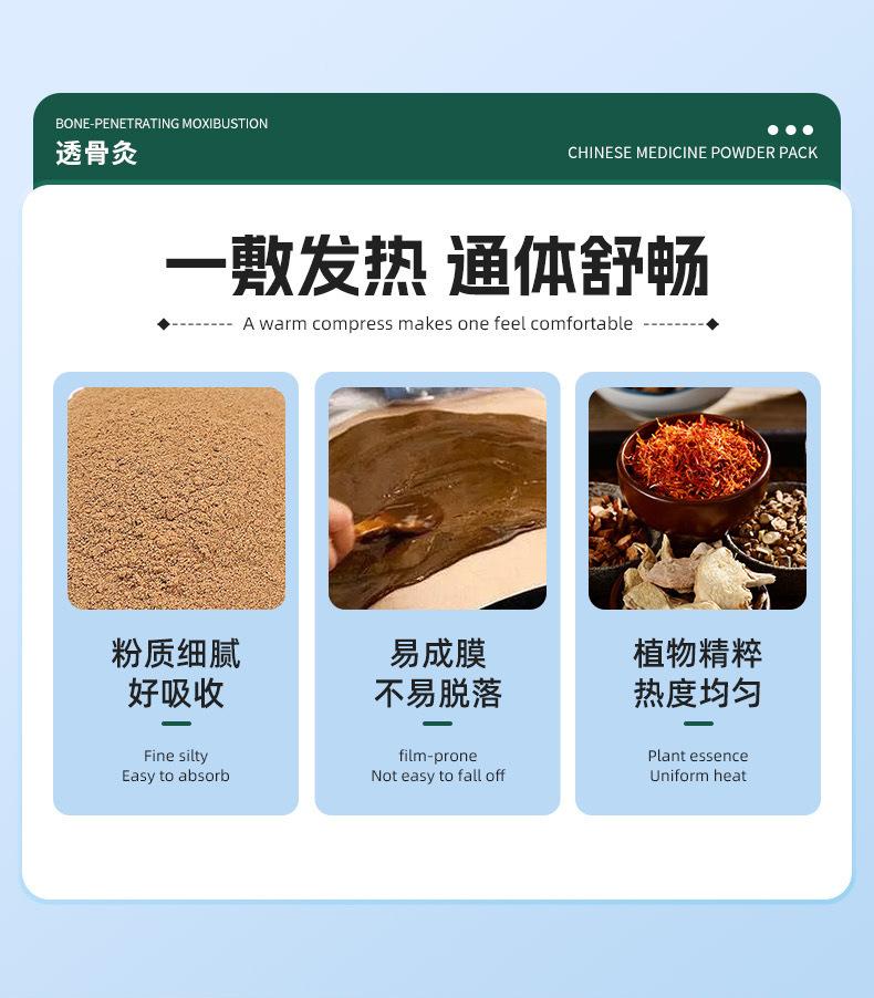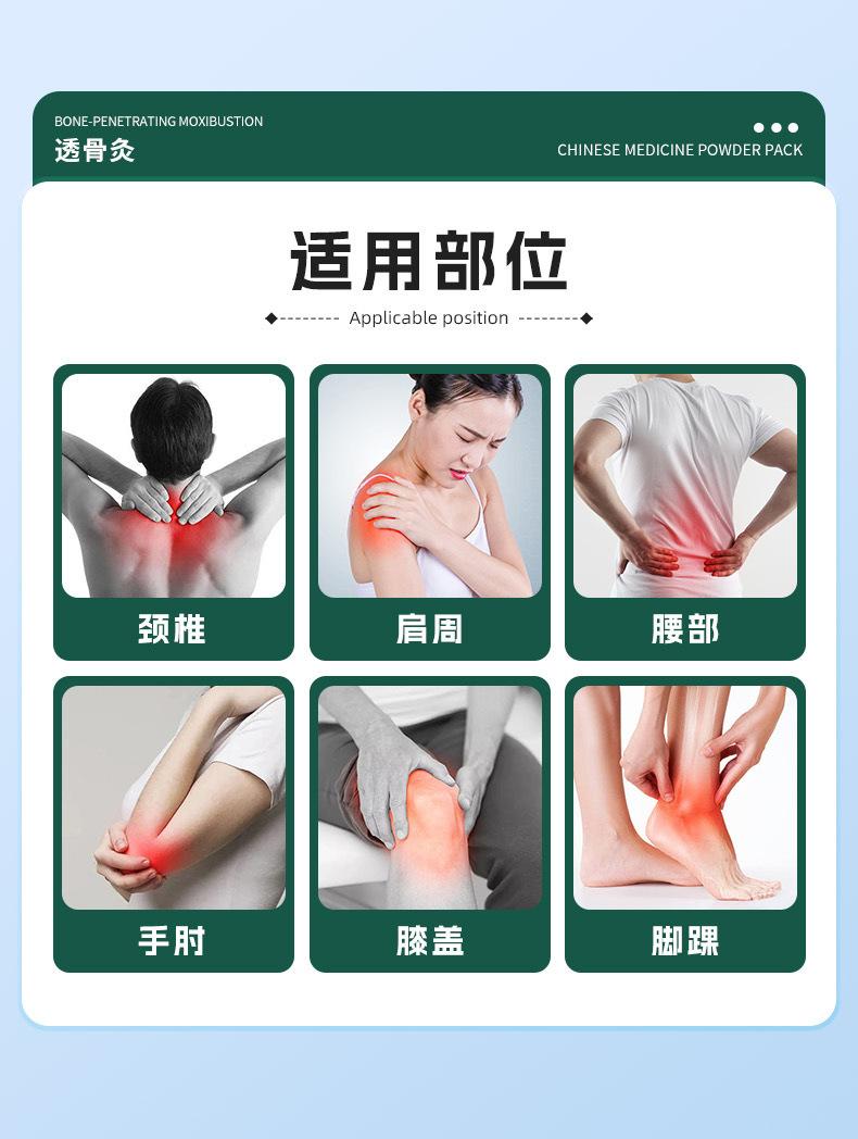 Moxibustión penetrante en hueso paquete de polvo de hierbas chinas aplicación externa polvo para el cuidado de la salud fábrica personalizado centro de fisioterapia dolor de cuello hombro cintura pierna paquete de compresas calientes de polvo de hierbas chinas