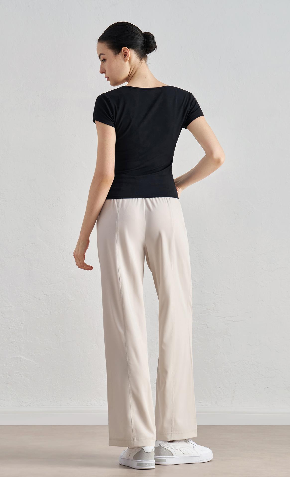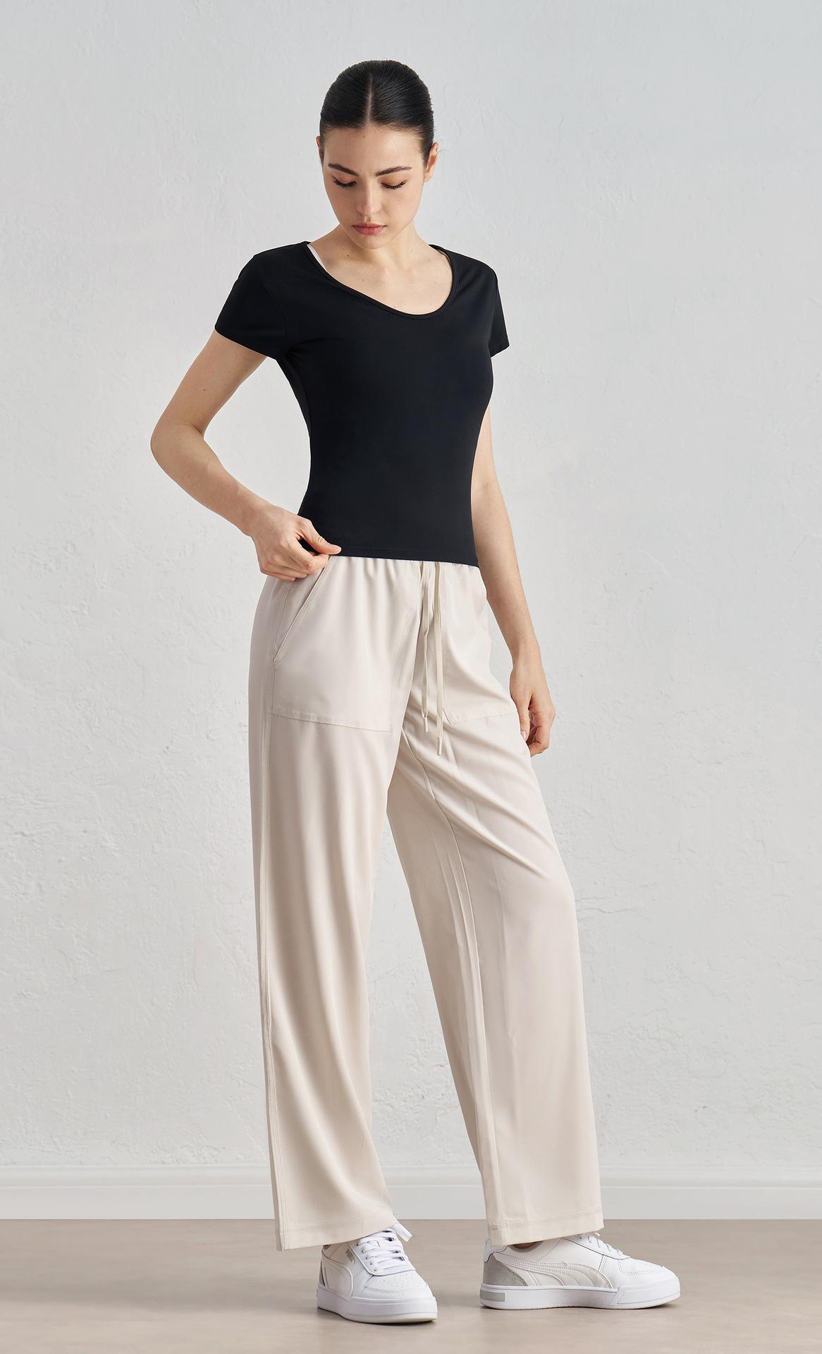Huan Pan Clothing Pantalones Deportivos Tejidos Nuevos Desnudos de Secado Rápido para Correr y Fitness para Exterior de Cintura Alta Sueltos para Yoga para Mujer